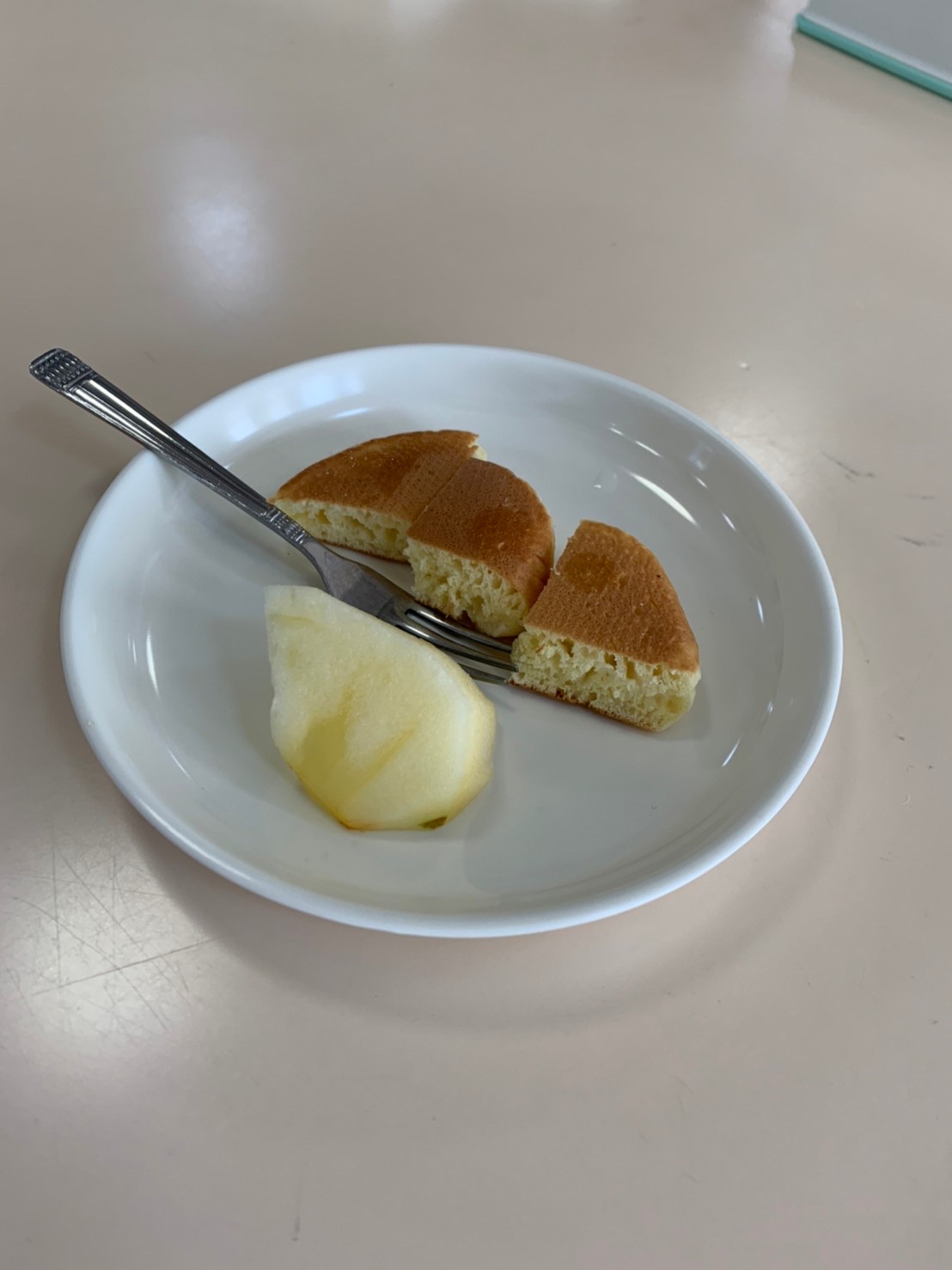 今日はホットケーキとりんごをいただきました。