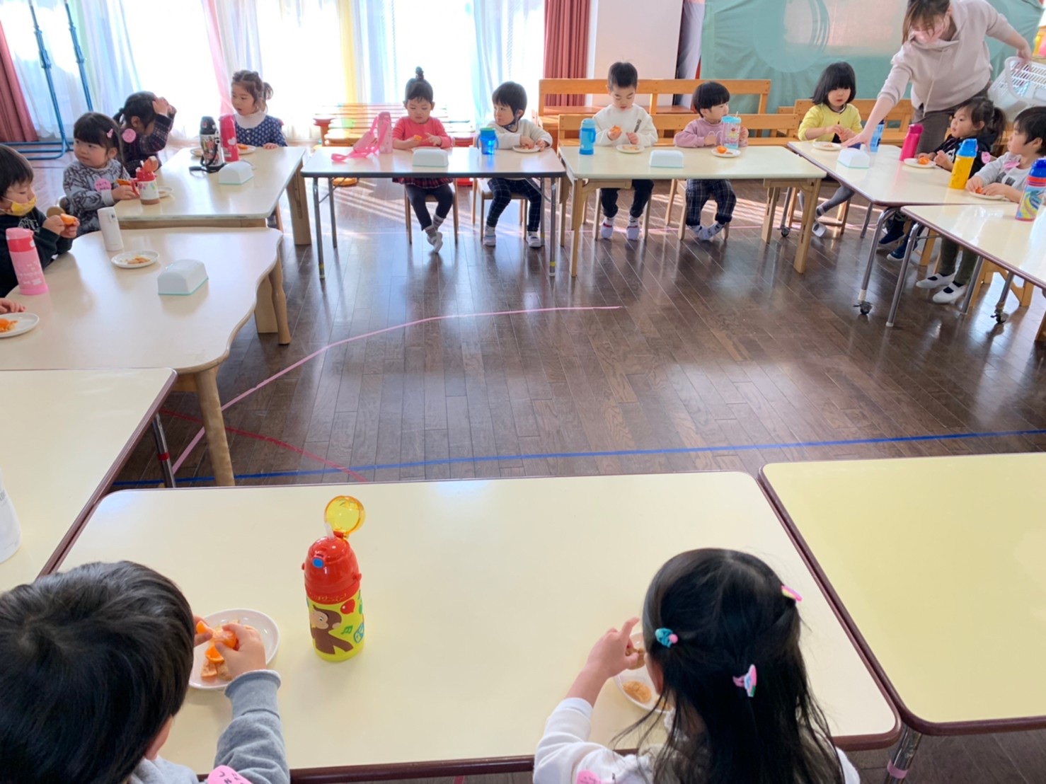 お友だちとのおやつタイム、少し慣れてきましたね。