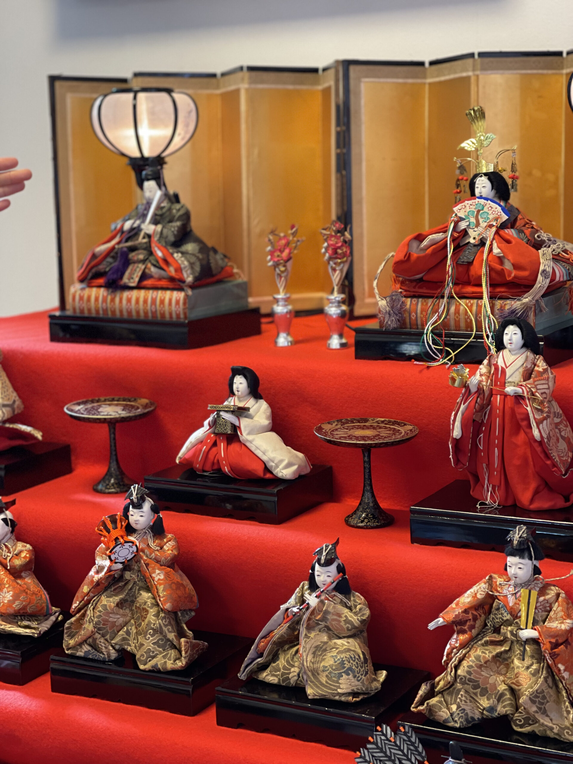 大きな大きな七段飾り。♪うれしいひなまつりの歌詞の通りに、白いお顔の三人官女、右大臣・左大臣がいます。