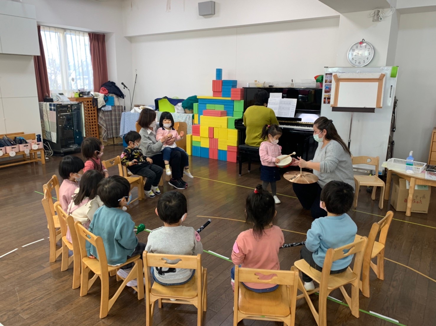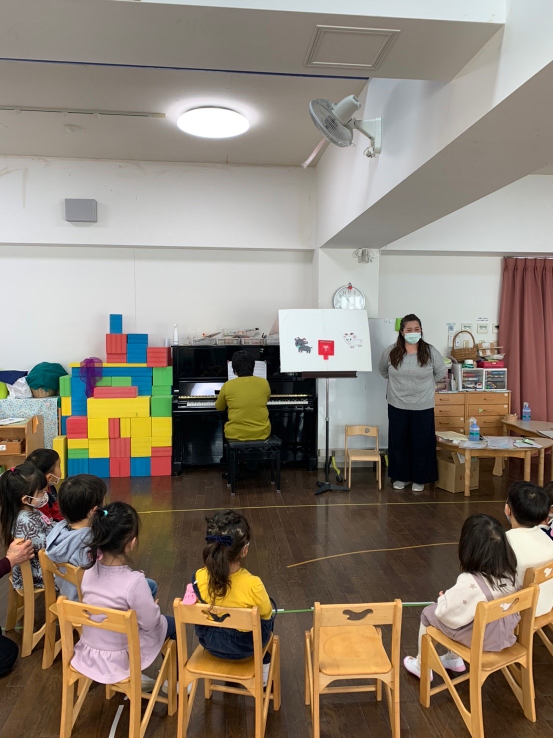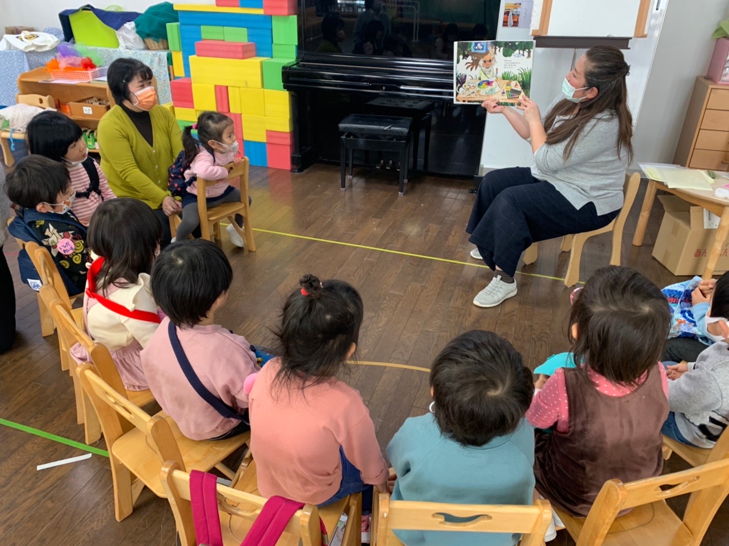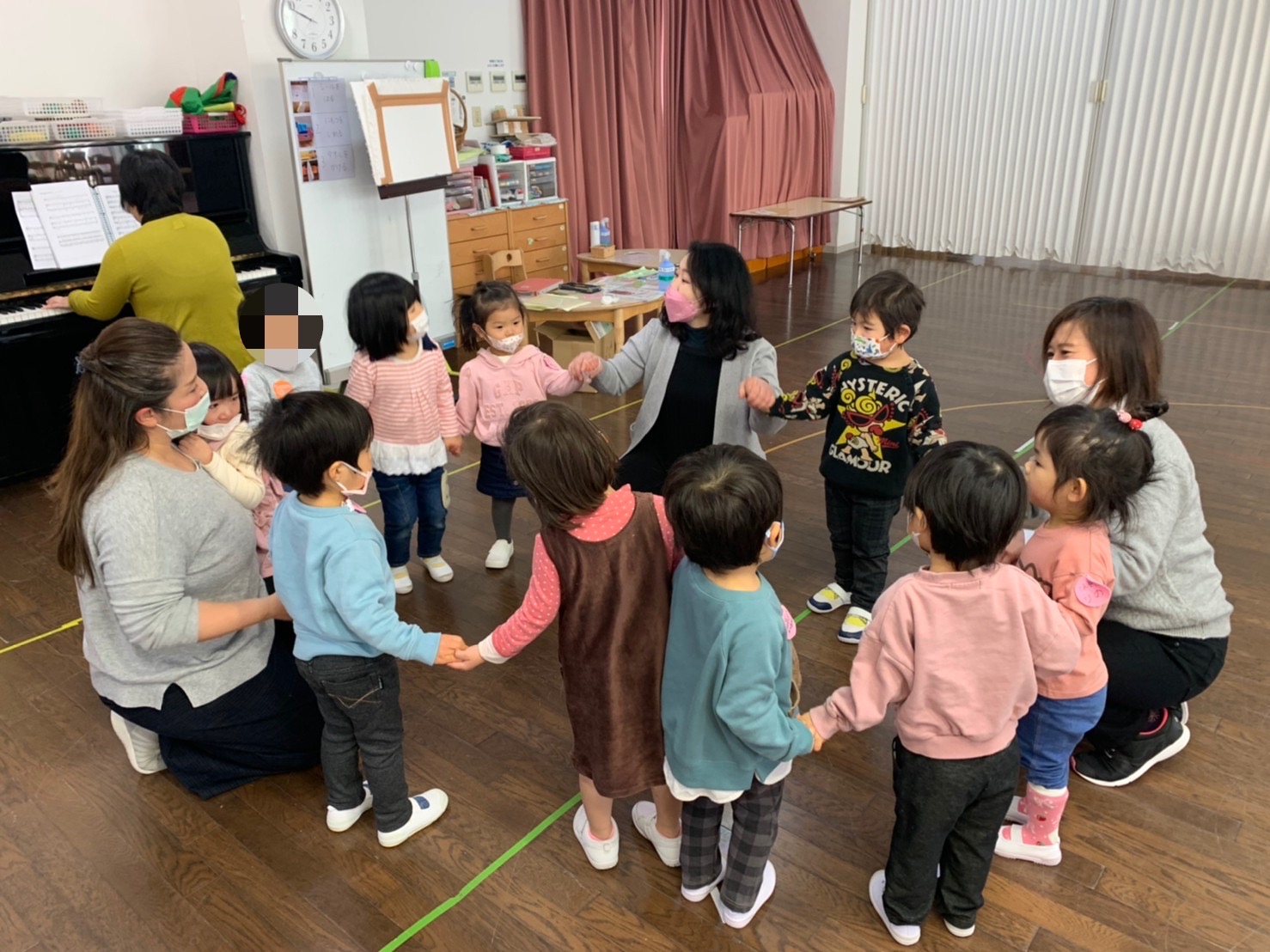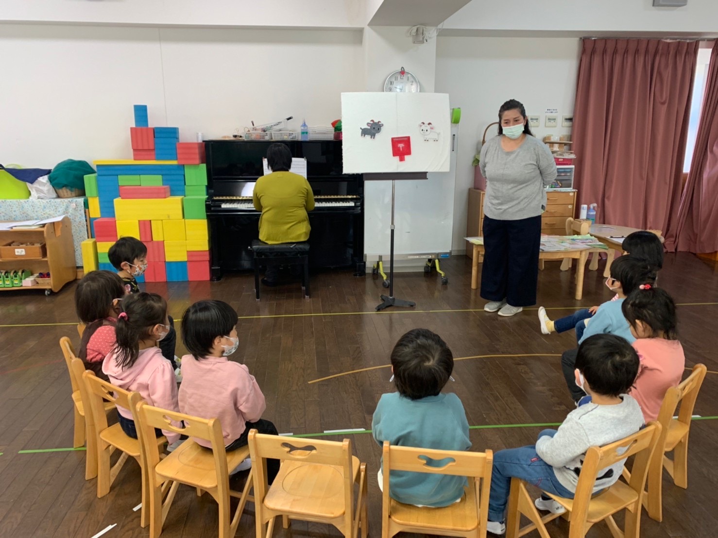 おうちの方の手を離す瞬間は、寂しい気持ちや不安でいっぱいになったお子さんもいましたが、体操をして、歌を歌って、お祈りをして、、いつものことをしているうちに気持ちが落ち着いてきました。