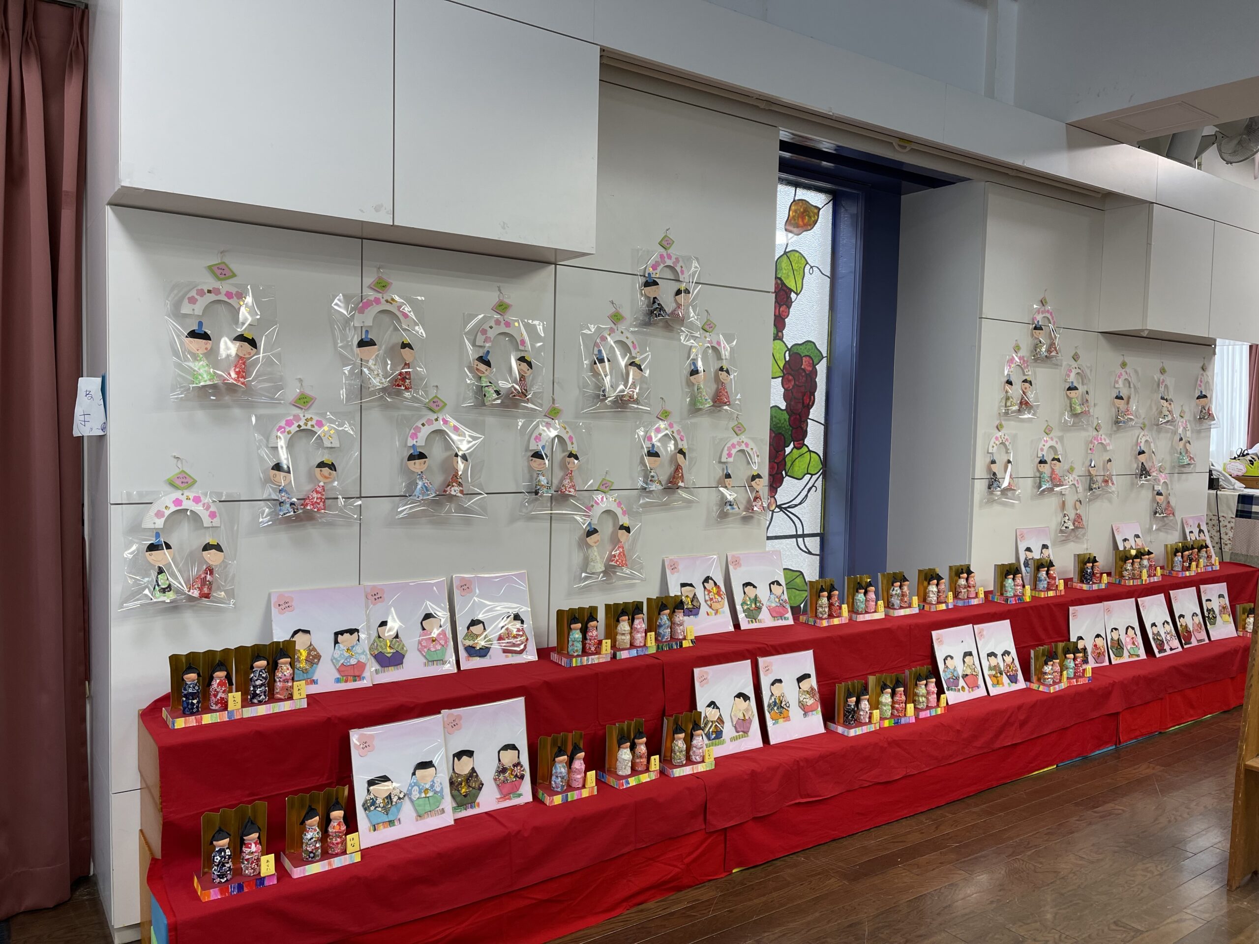 3学年76人のお雛さまも華やかに飾ってあります。どうぞ、ゆっくり1人ひとりの表情も見て、楽しんでいただけたらと思います。