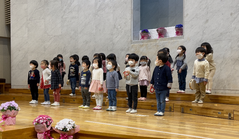 団結力もあり、本当に思いやりの気持ちを持つ優しい1人ひとりの歌声は…年長組での活躍が、目に浮かんでくるような明るい、希望のある歌声で、この1人ひとりに出会えたこと・一緒に過ごせることに…幸せを作り出す子どもたちの成長に嬉しい幸せな気持ちでいっぱいでした。