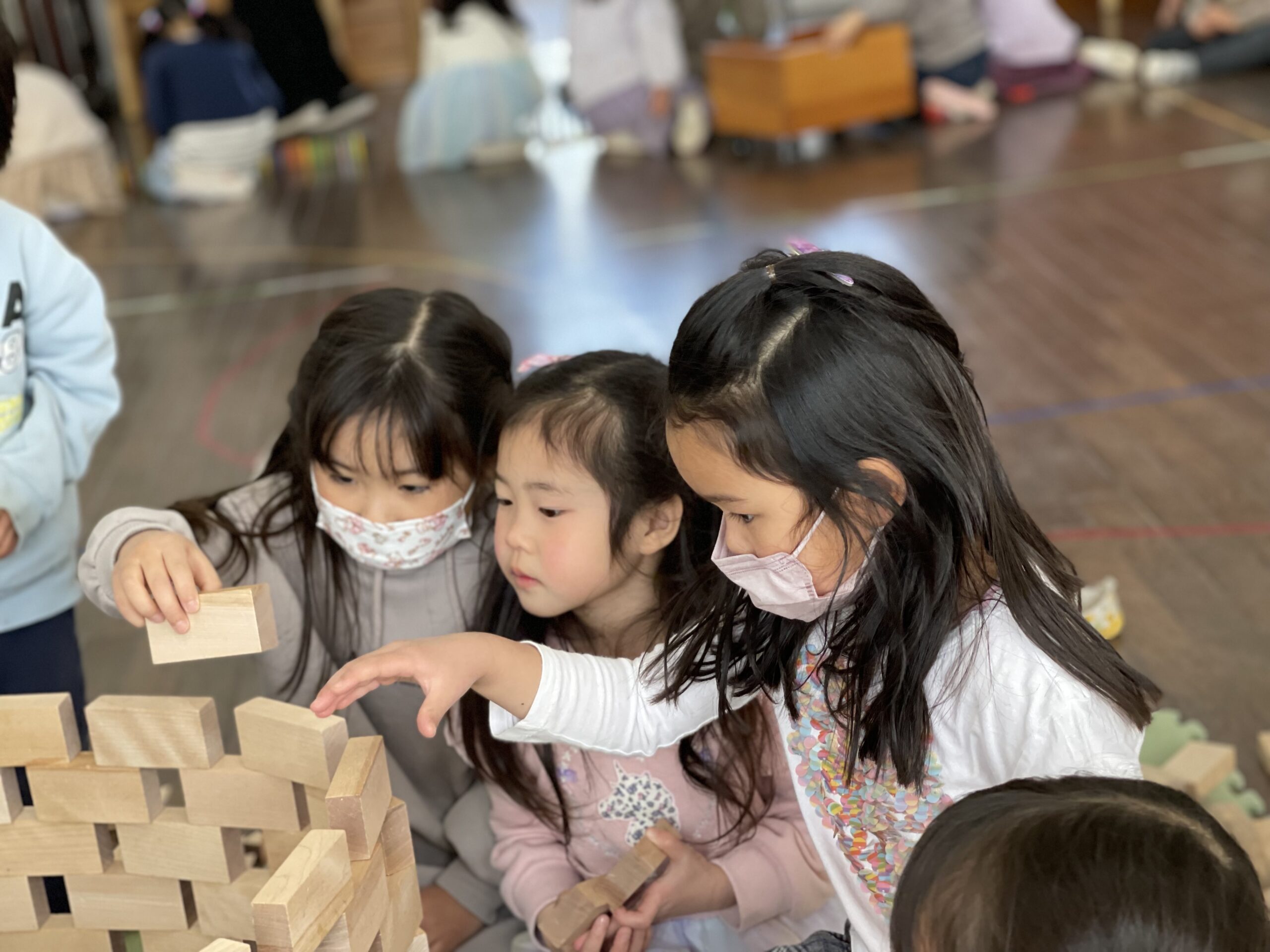 年少組もお別れ感謝会のために、今日も練習!全力で楽しんで歌っていました。涙がいっぱいだった4月が嘘のように逞しくなり、お部屋でも園庭でもこまのように…小さい身体で、くるくるとよく遊びます。遊びの中で、本当に色々なことを体験し・学び、気づいていきます。お話しをしたいこともいっぱいあるようで、嬉しい成長をいっぱい見せてくれています。