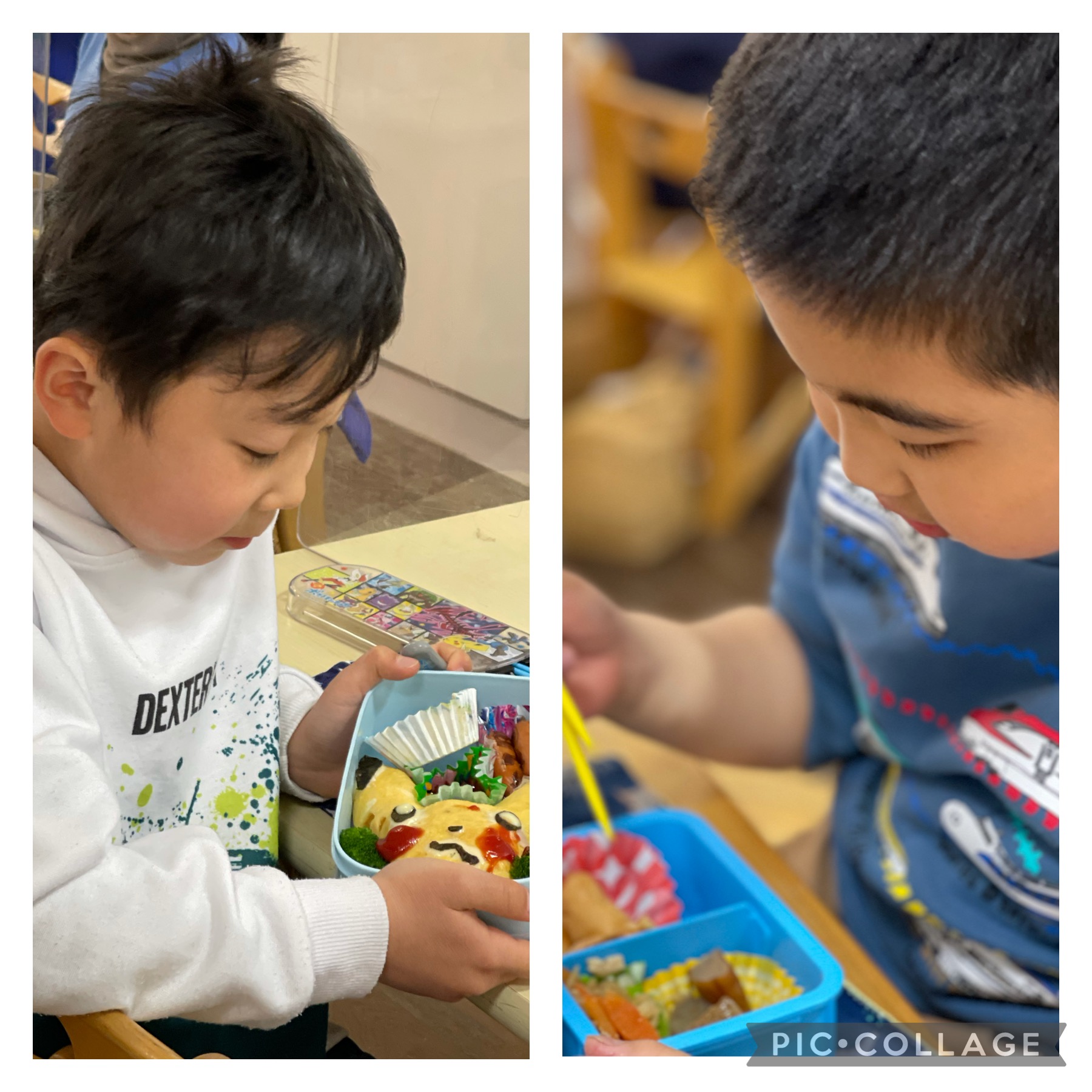 幼稚園でのお弁当が本当に最後となった年長組では…お母さまからのお手紙や思いを込めて作られたメニューやデコレーションを子どもたちは嬉しそうに見ていました。作ってくださるお母さま方…体調の優れない時もあったでしょう…お弁当作りが初めてだった方もいらっしゃったかもしれませんね。
