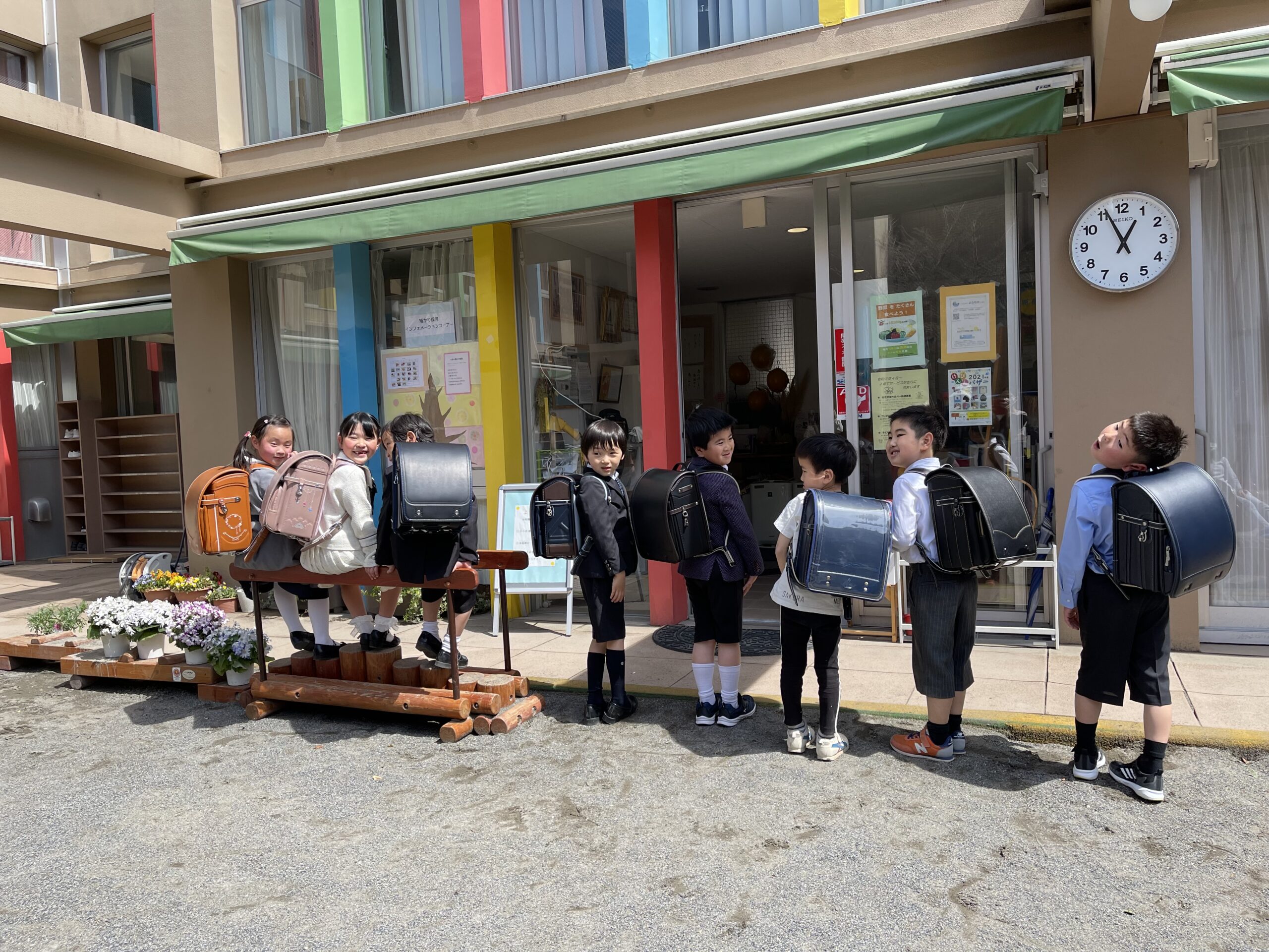 小学1年生は、入学式が終わってからランドセルを背負ってきてくれました。明日からの毎日が、笑顔でお友だちと嬉しい・楽しい毎日となりますように…願っています。