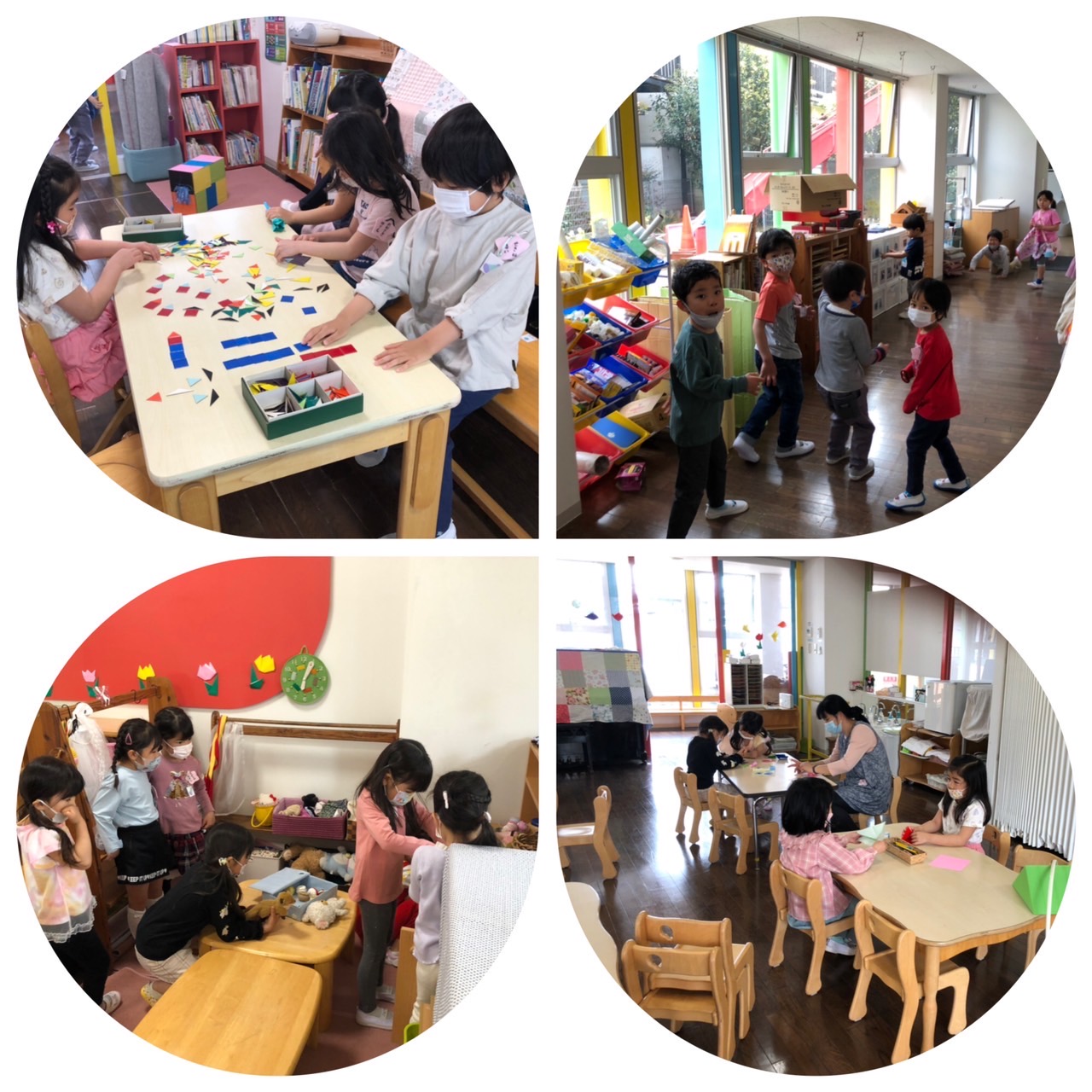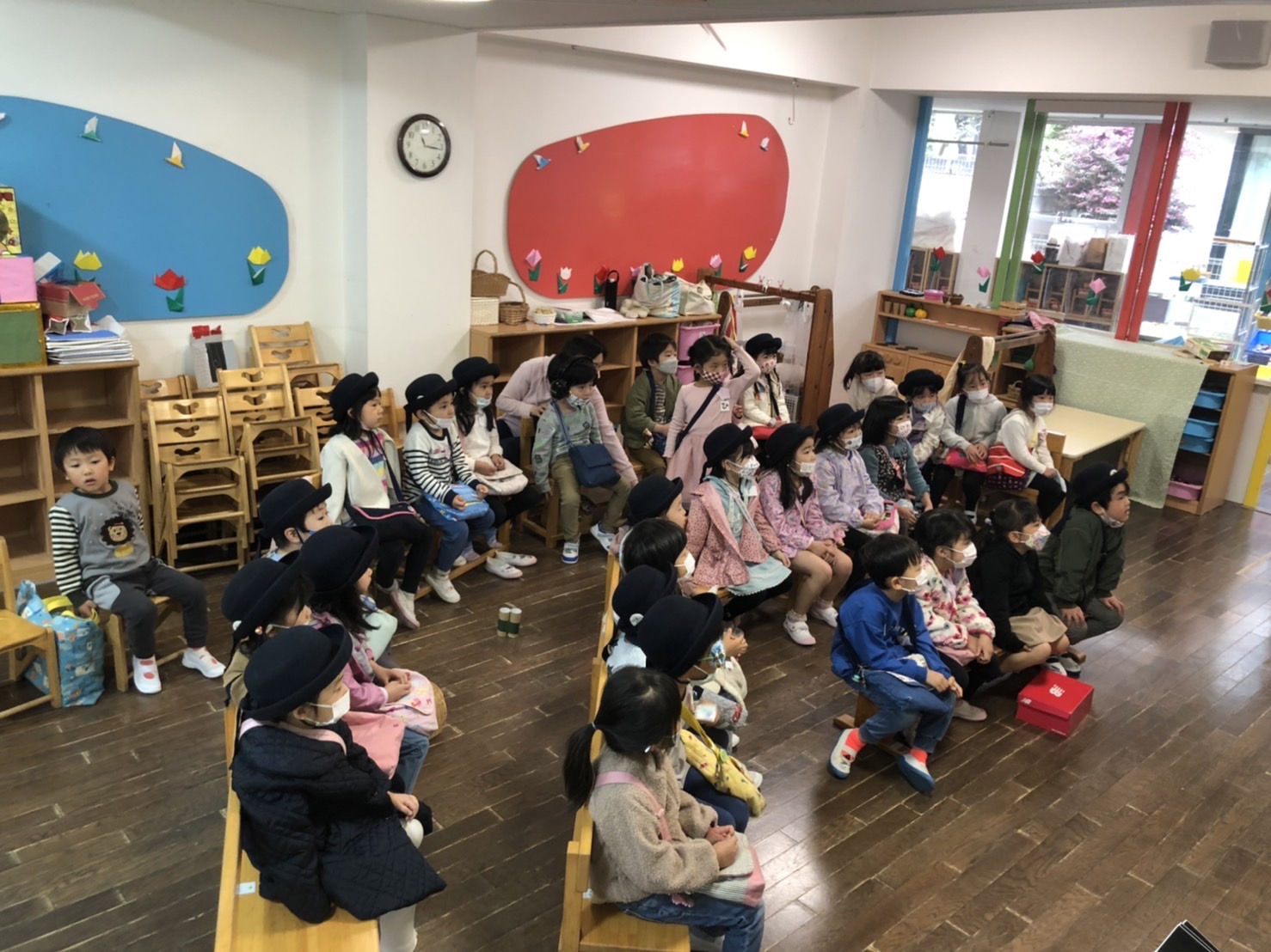さくら組の生活が始まって3日目になりました。お集まりになると、子どもたちは目をキラキラさせて、お話しを聞いてくれて、嬉しいです。