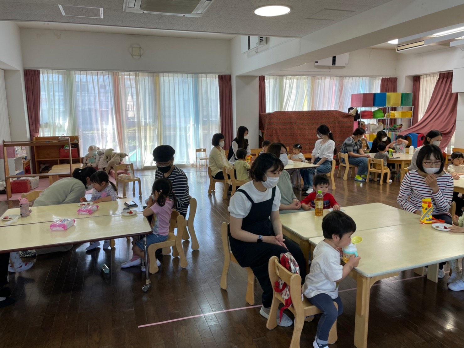 もも組は感染予防のため、15名の予約制での保育をしています。