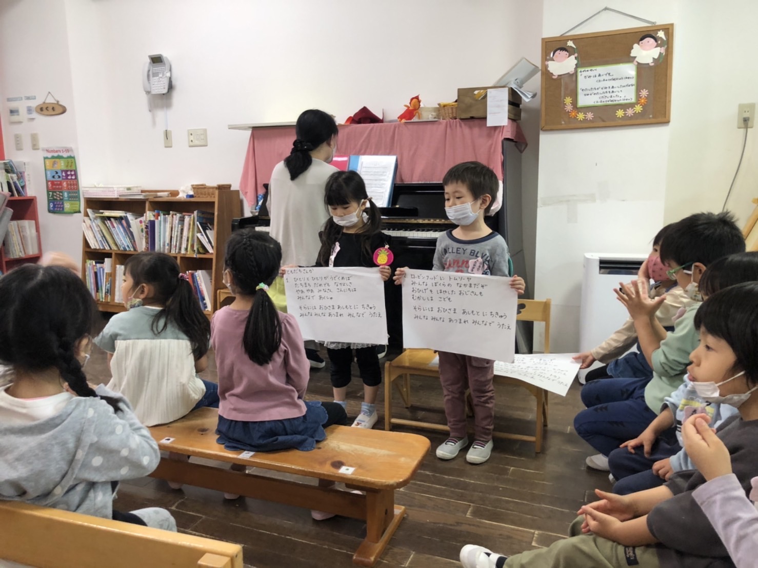 お誕生日会 今日のひとこま 2022.04.28 今日は、4月生まれのお友だちのお誕生日会でした。お祝いの後は、さくら組お母様方が、ゲーム会をひらいてくださいました。子どもたちの喜んでいる姿を見て、幸せいっぱいの時間でした! ありがとうございました。