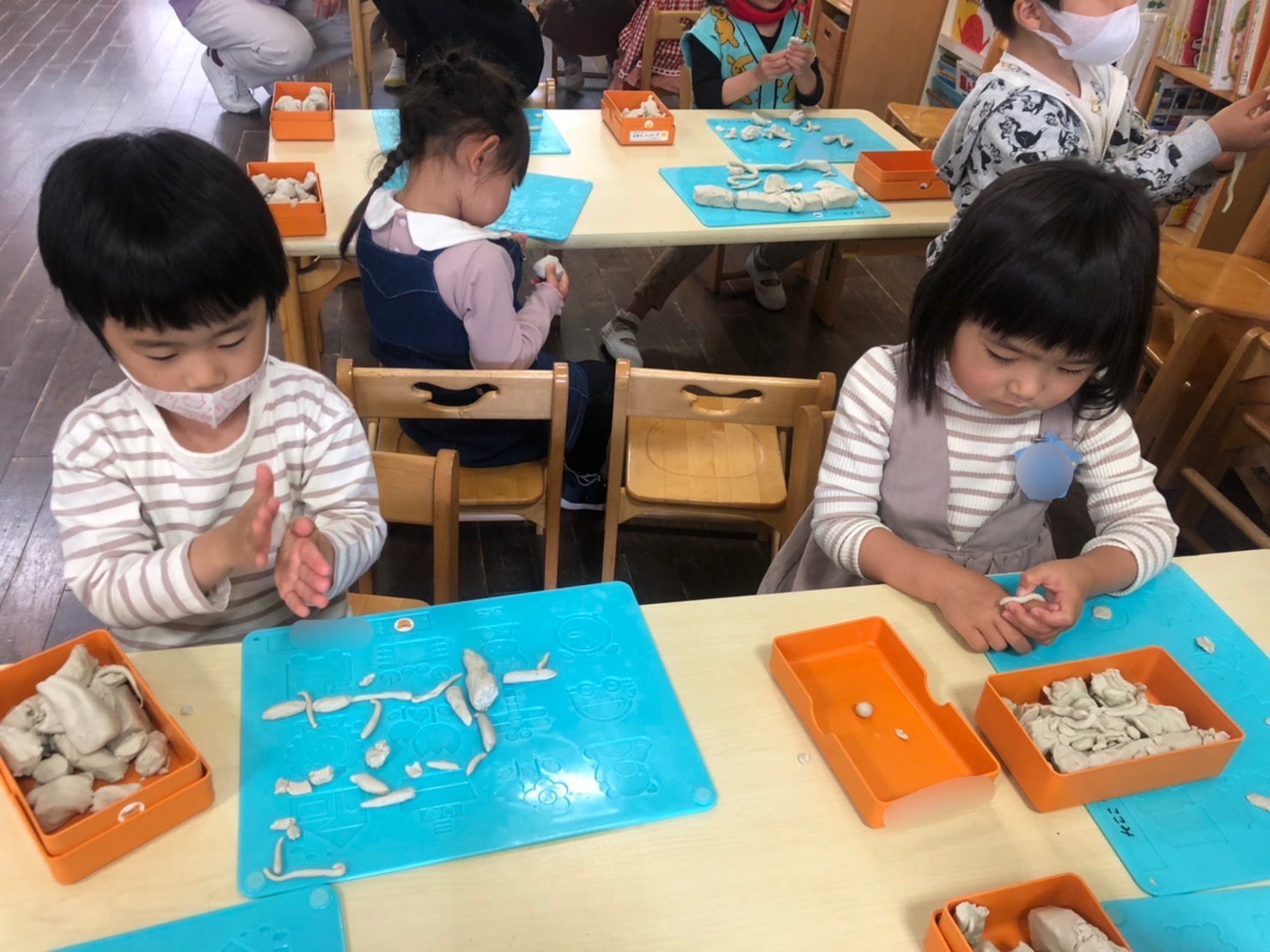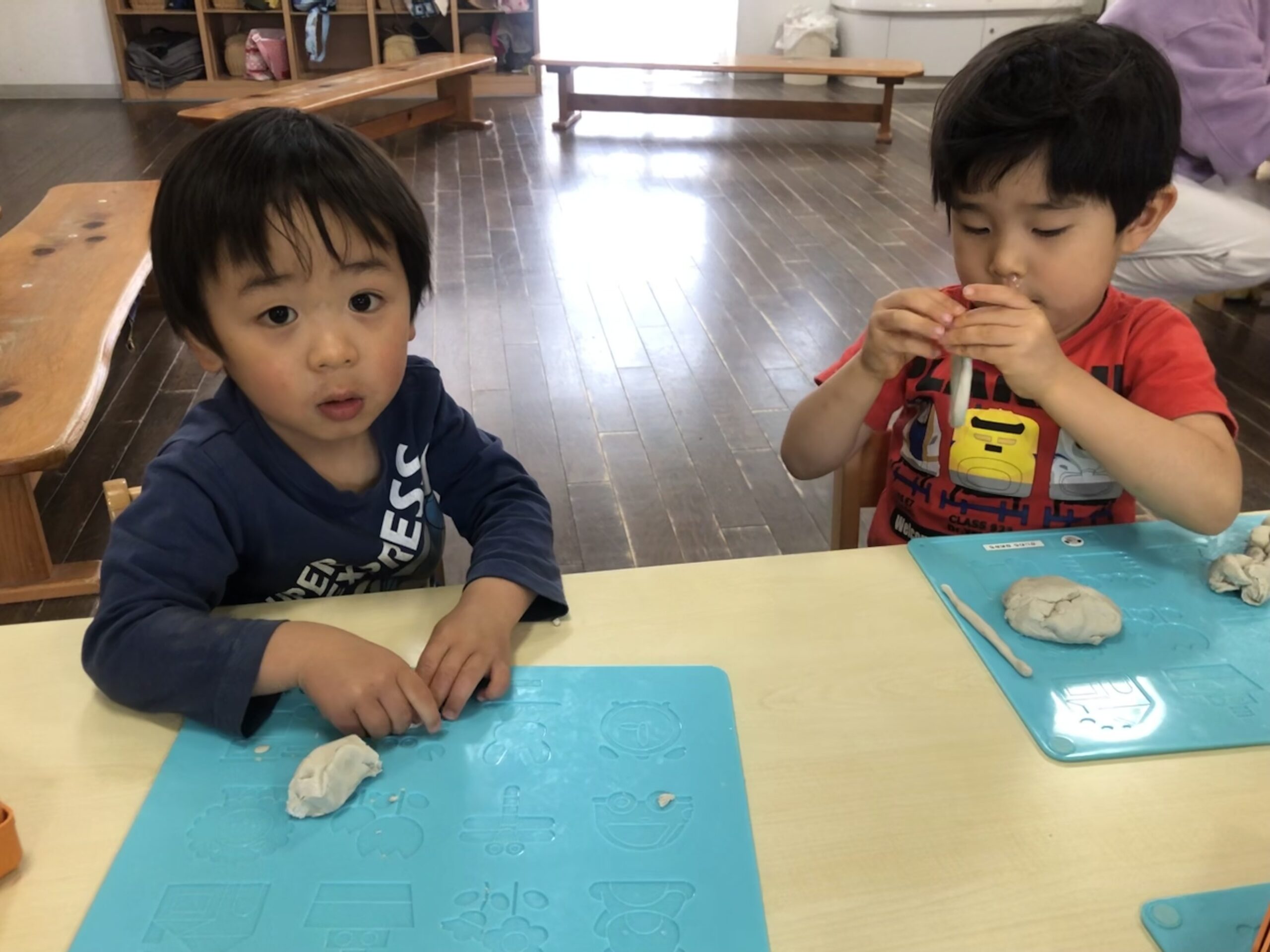 今日ゆり組では、ねんどで遊びました。