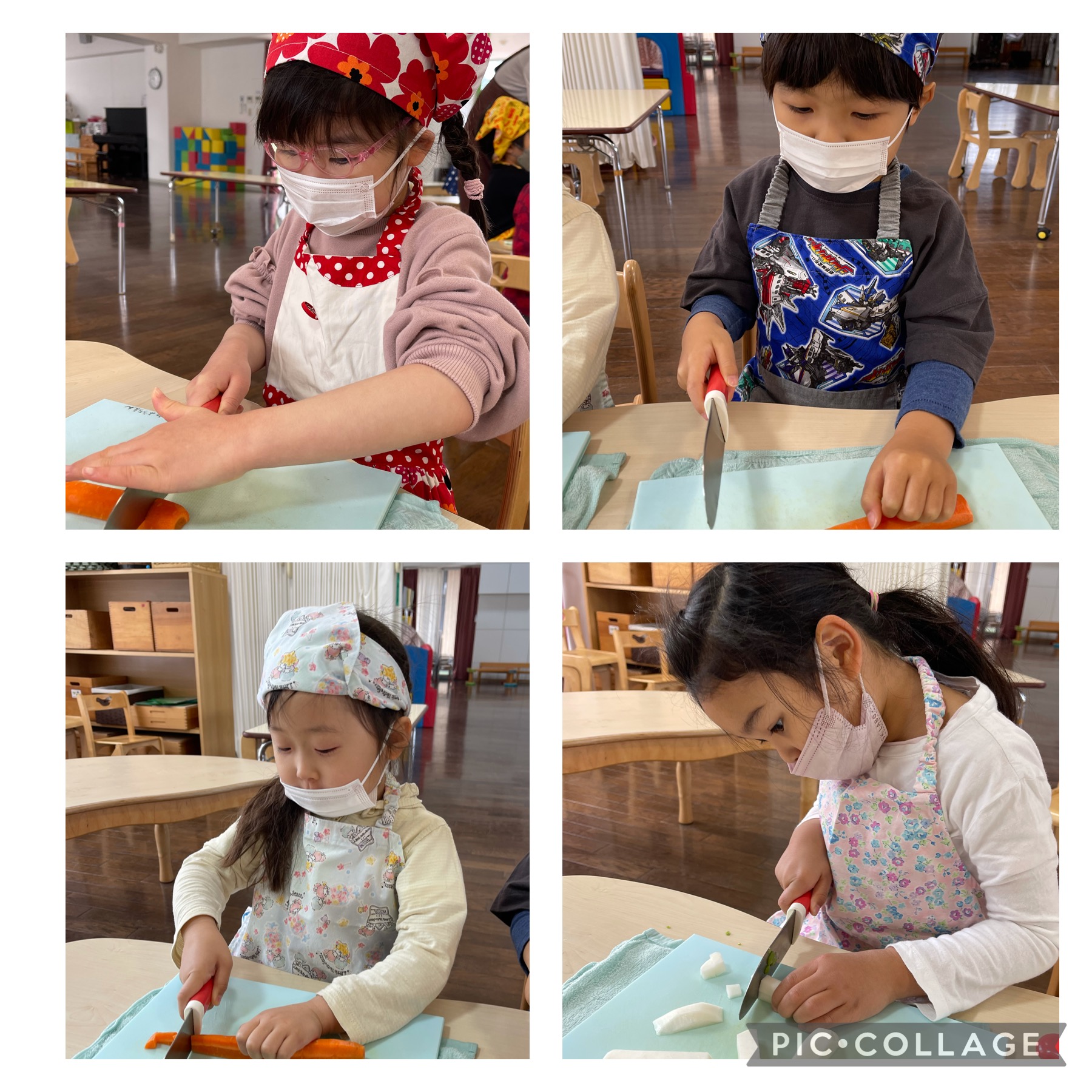 今日のお味噌汁は、さくらぐみが食材のカットを担当してくれました。ゆり組のお友だちも初めての『お味噌汁の日!』でした!!