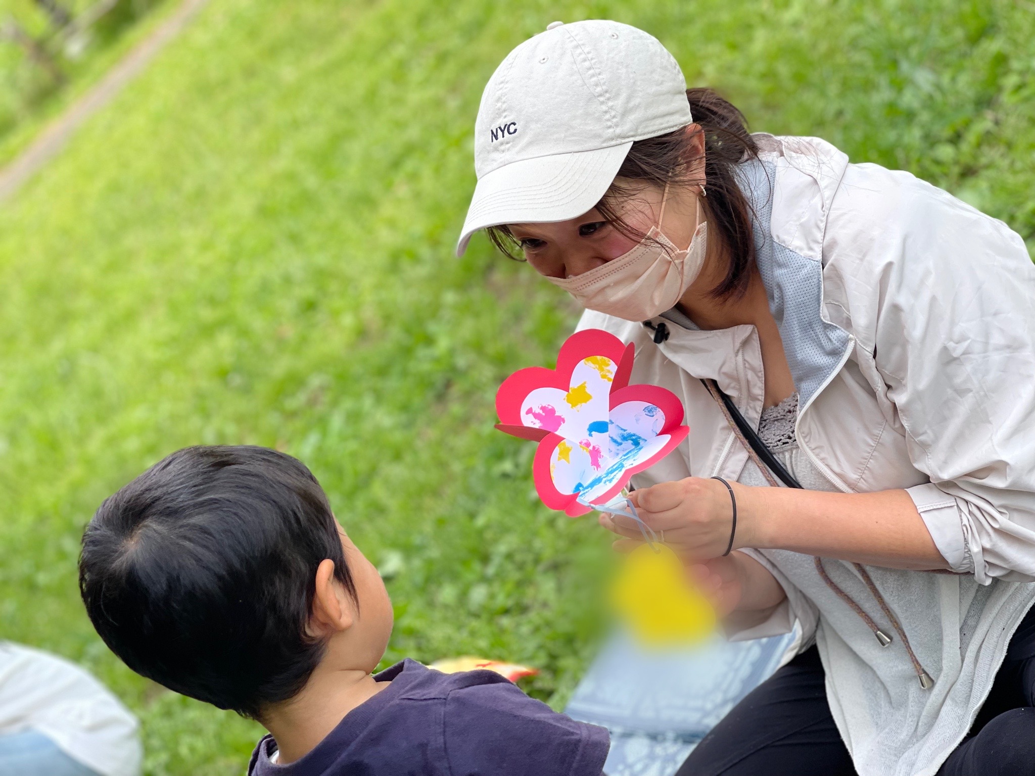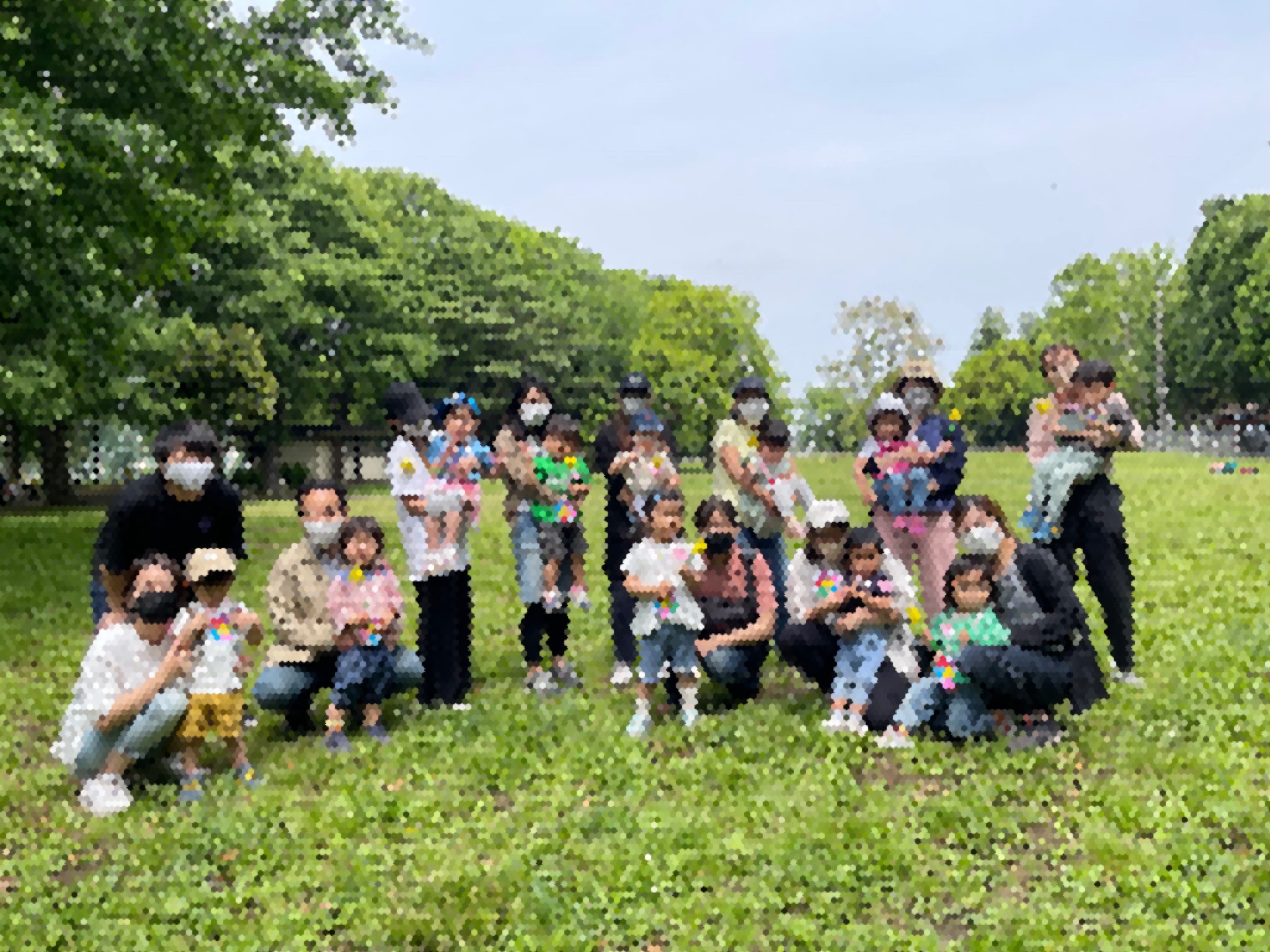 気持ちの良い緑に囲まれた公園で、体操や礼拝をしたりペンダント作りをしたり、おやつを食べたり…楽しい時間を過ごしました。