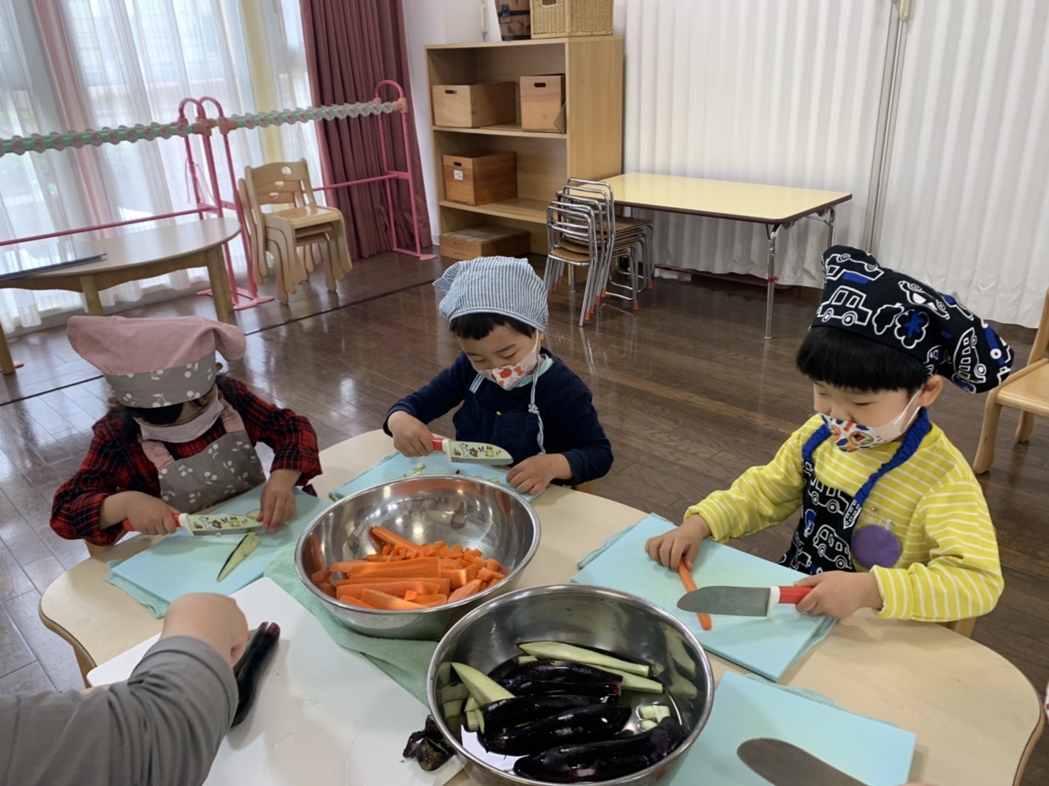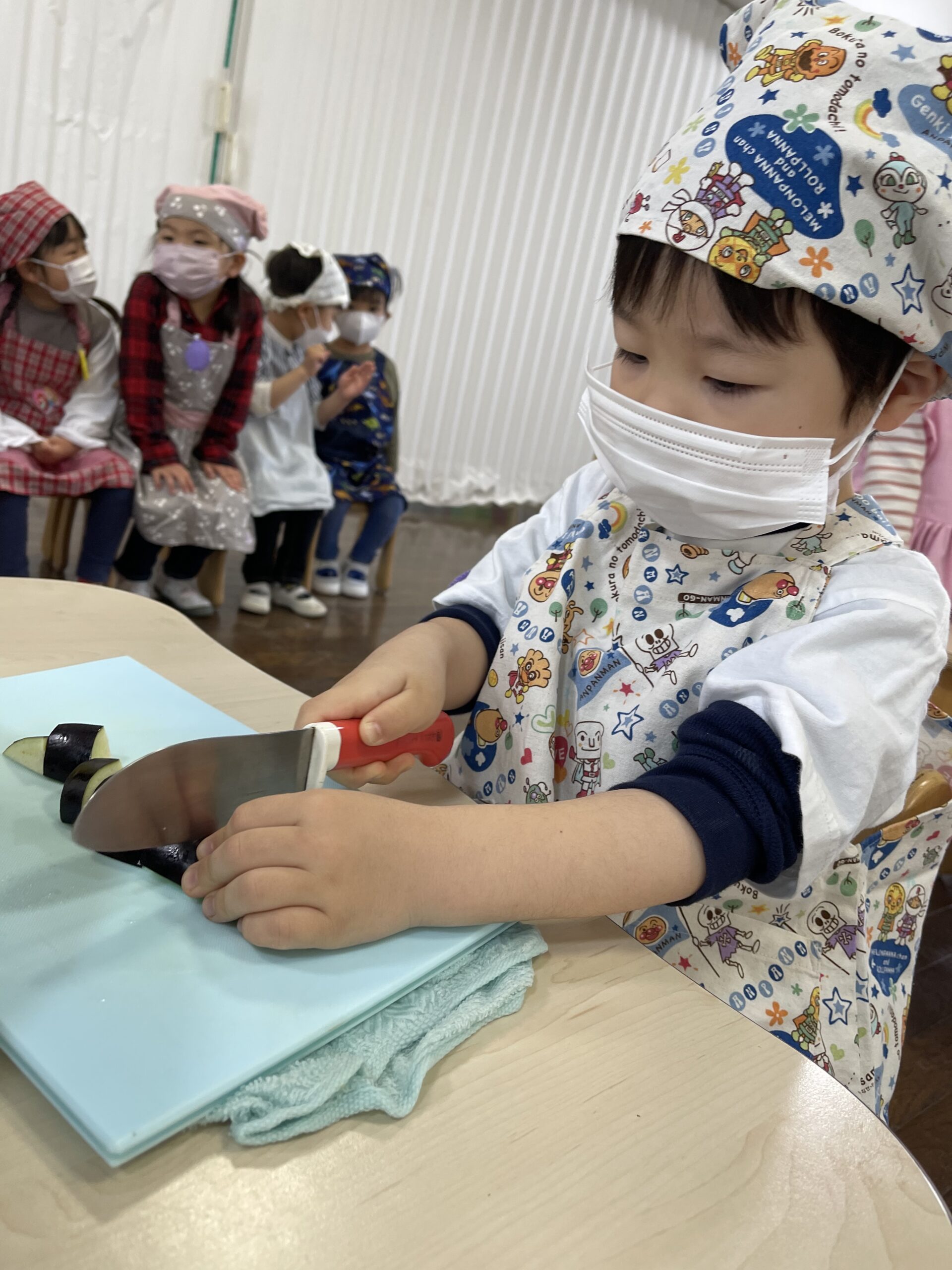 今日のたんぽぽ組はお味噌汁のクッキングをしました。美味しいお味噌汁になりますように。。。と、一生懸命、具材を切りました。お弁当の時間、みんなで美味しくいただきました。