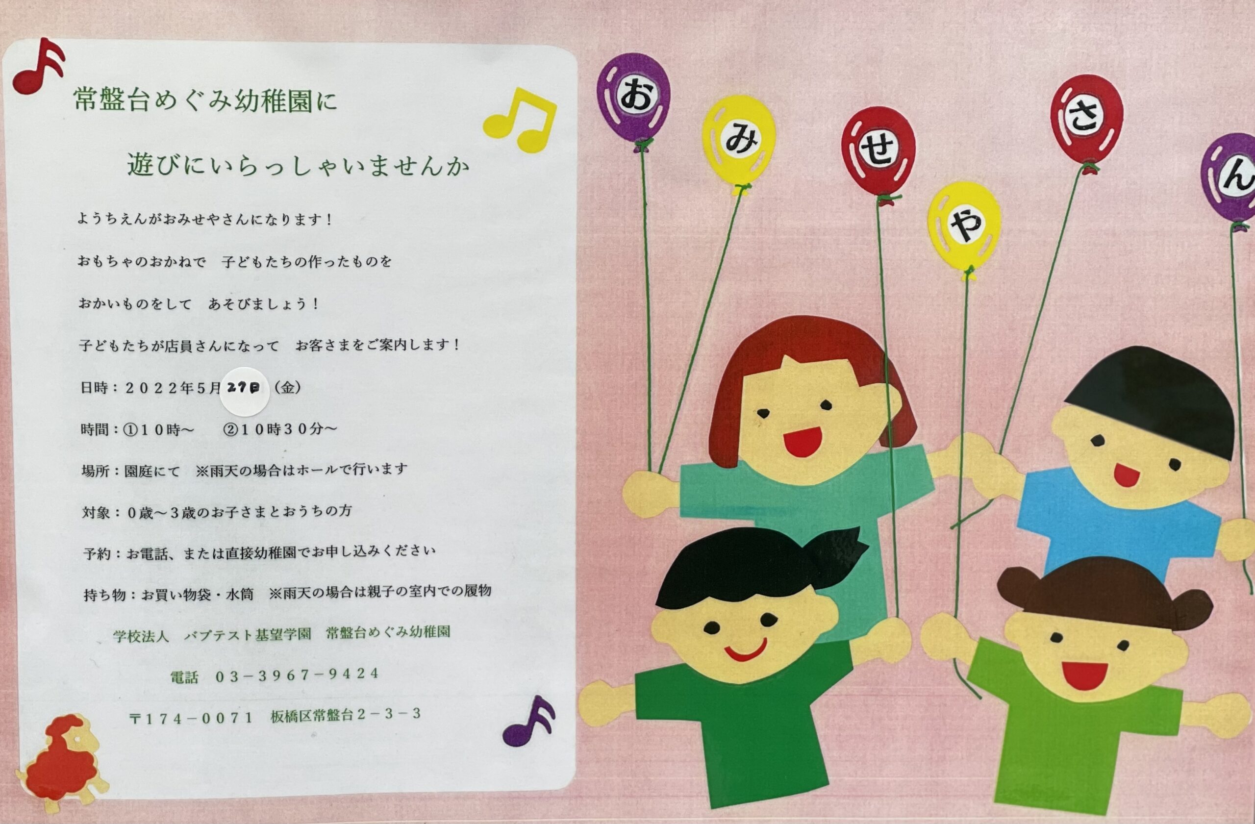 ちいさなおともだち…めぐみ幼稚園のおみせやさんに遊びに来ませんか?