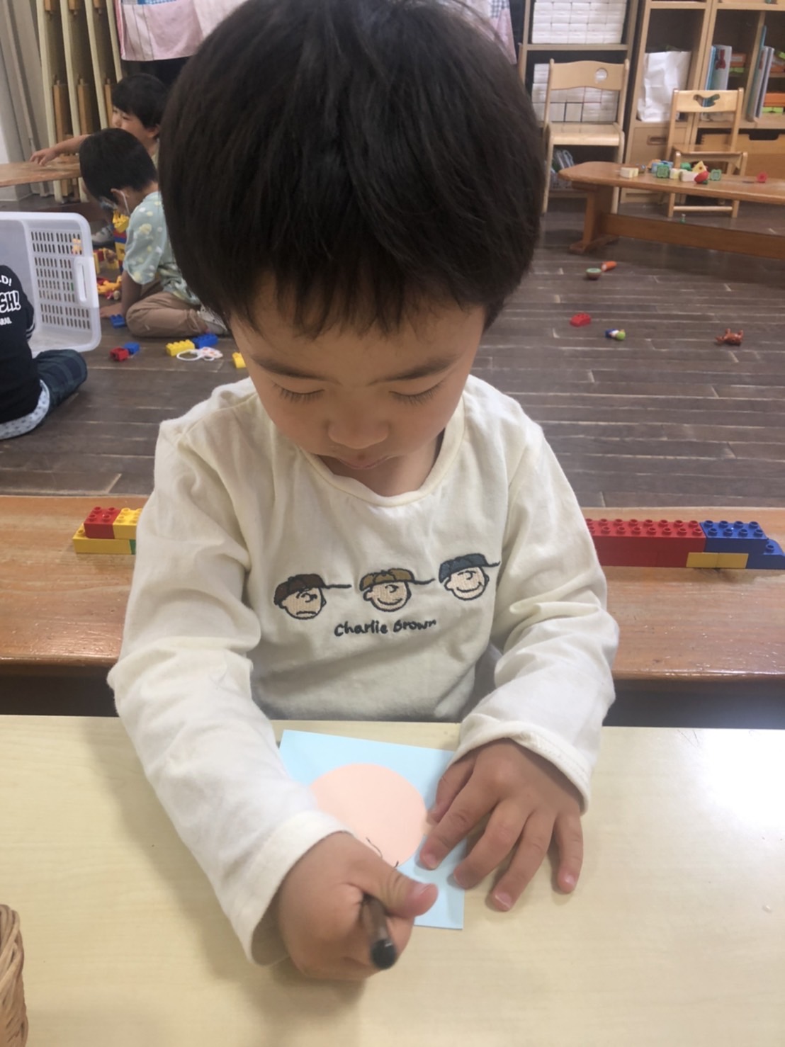 ゆり組では、大好きなお父さんのために「父の日」のプレゼントを今日から作り始めました。