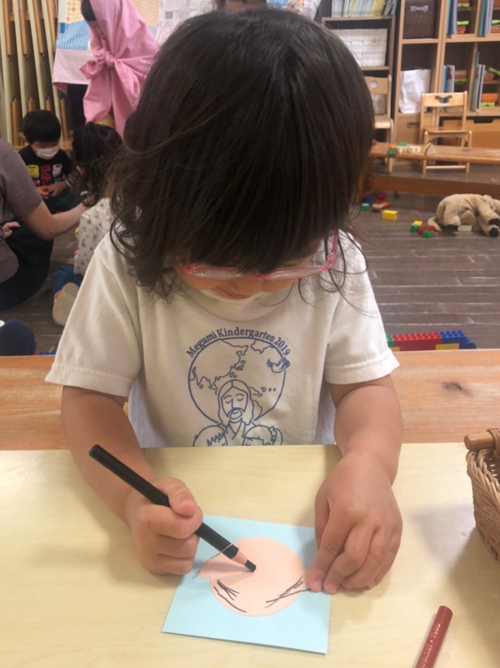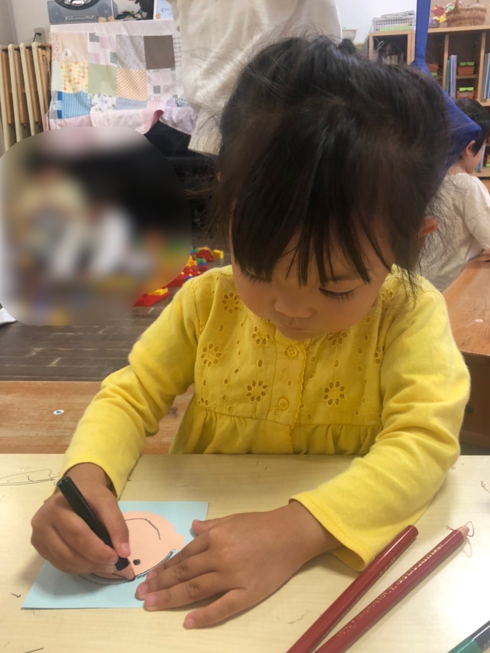 お父さんのお顔を思い浮かべながら、お顔を描きました。