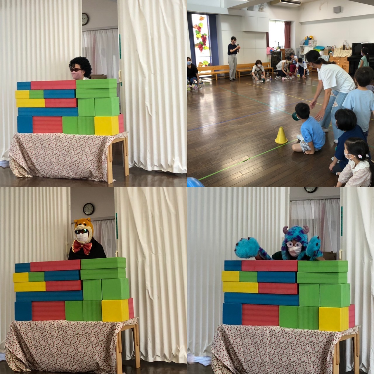 今日はお誕生日会で12人のお友だちのお祝いをしました。園長先生と色々な方法の挨拶をしましたね。さくら組のお家の方は、誰のお母さんでしょうか?クイズやペットボトルボウリングをして、お土産に、『月刊めぐみっこクラブ』をもらいました。たくさんのご準備ありがとうございました。七夕パーティーをして、心とからだが満たされて、今日はさようならとなりました。