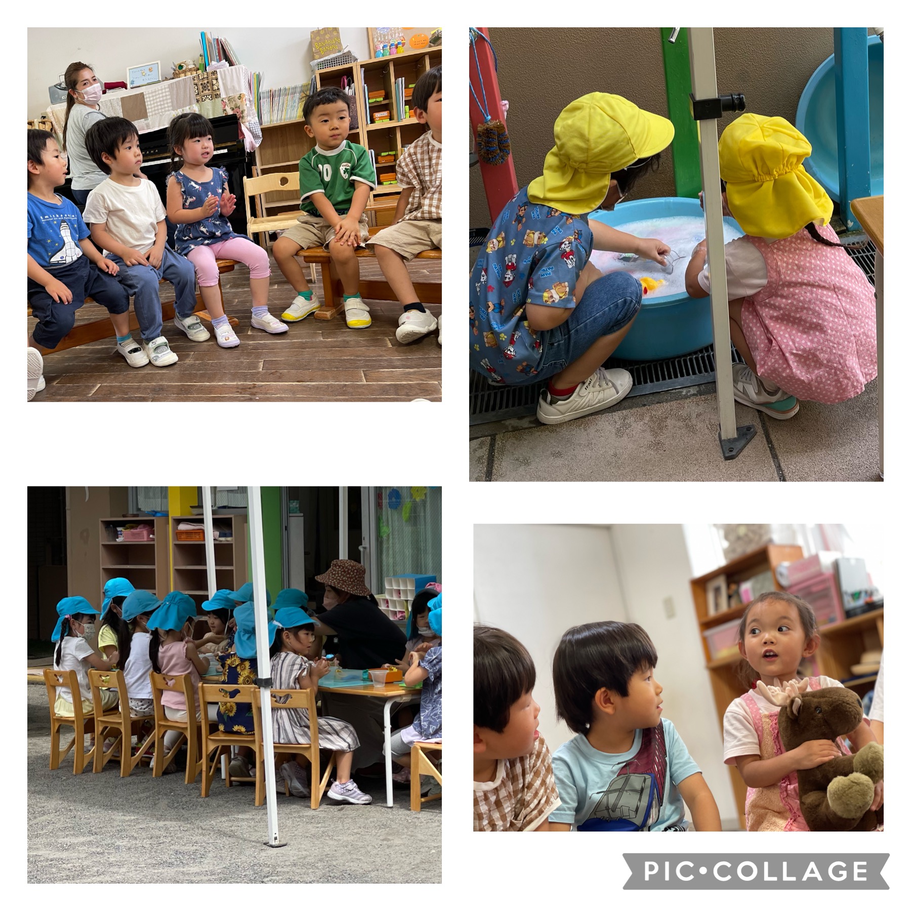 夏期保育2日目。昨日より、シャボン玉の世界が濃くなり、小麦粉粘土の腕も上がっていましたね!