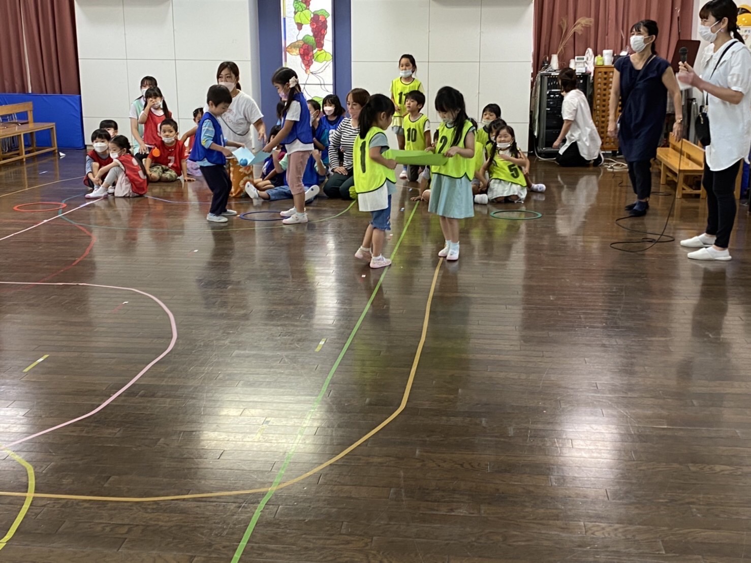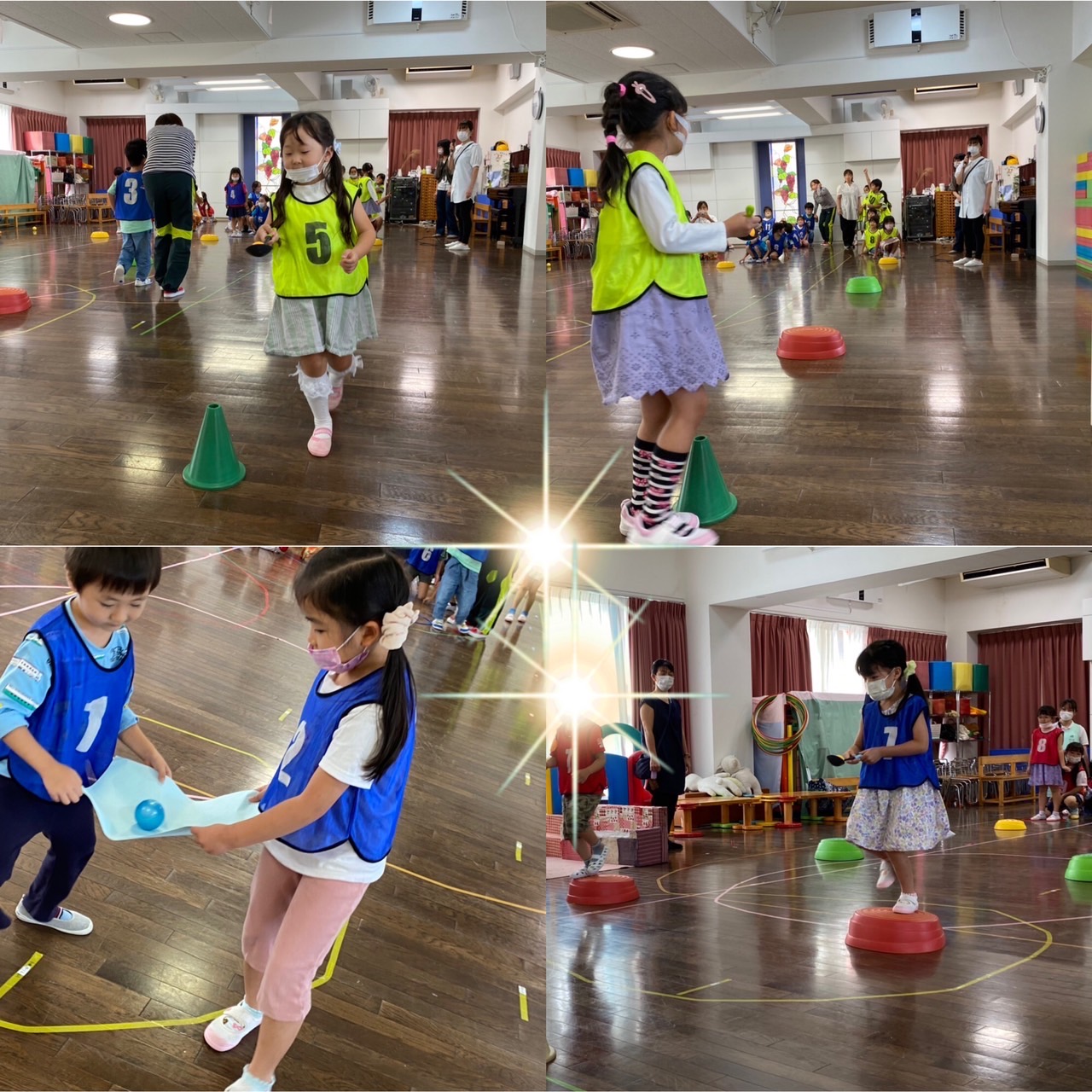 お家の方のお楽しみ会は、おたまでピンポン球リレー、2人組でボール運びリレー、ほうきでお掃除リレーをして、素敵なメダルをもらいました。楽しかったですね、ありがとうございました。