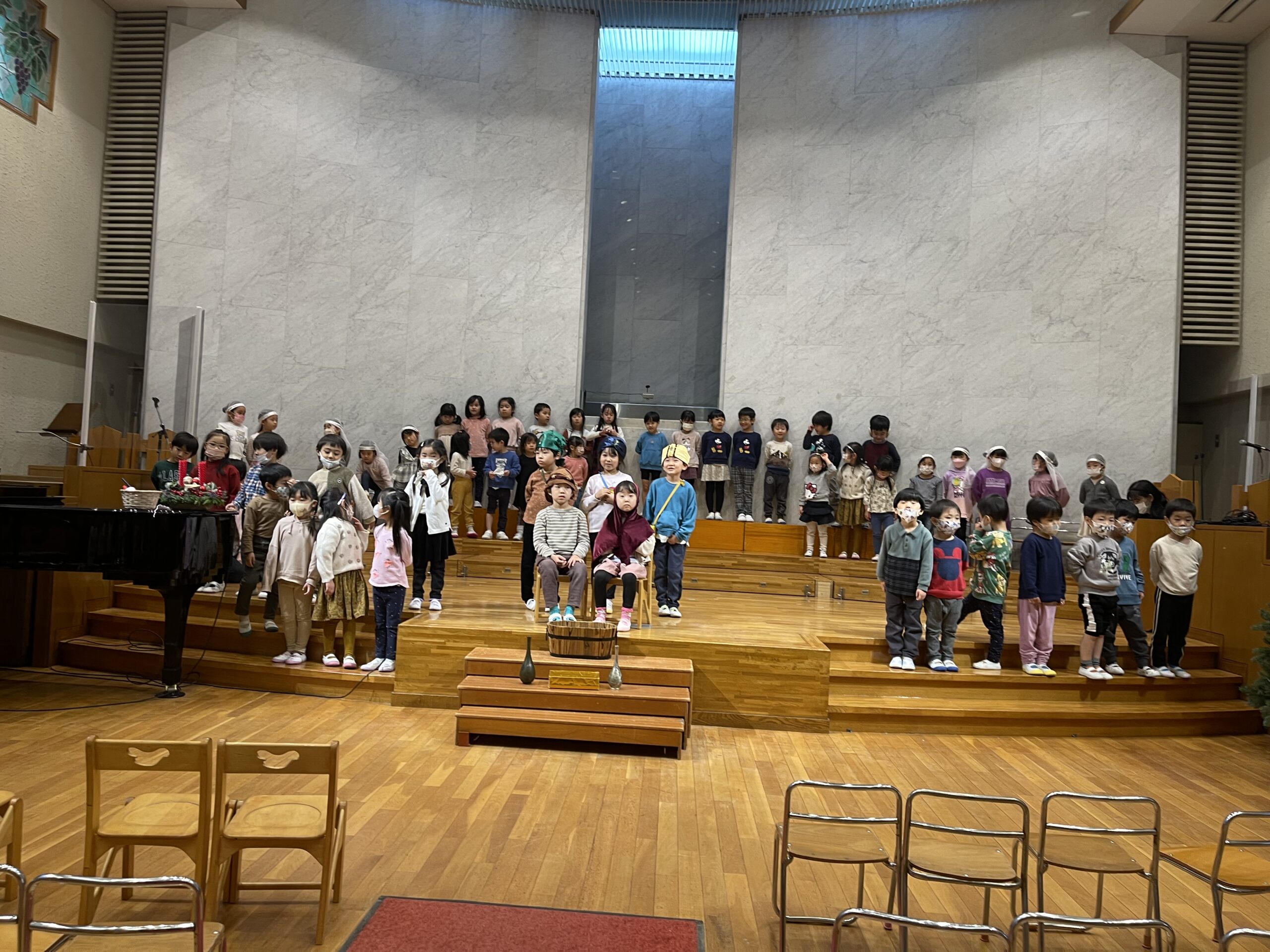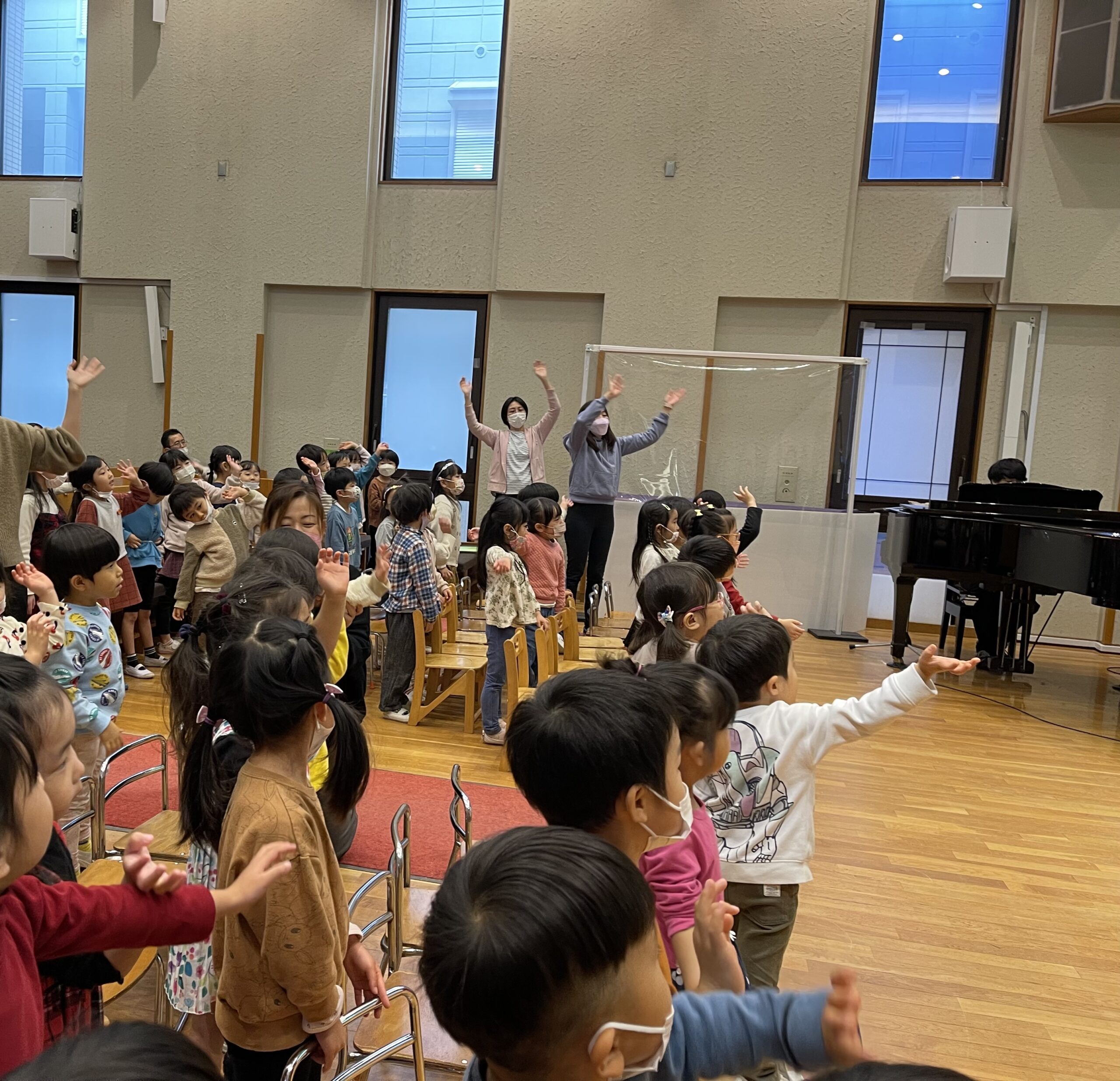 特別ゲストに子ども賛美歌『にじのよろこび』を作ったお兄さんと教会のお姉さんが来てくださり、一緒に踊りながら歌を教えてくださり、楽しい時間を過ごすことができました!!どうぞご家庭でもご家族で、歌ってみてくださいね。