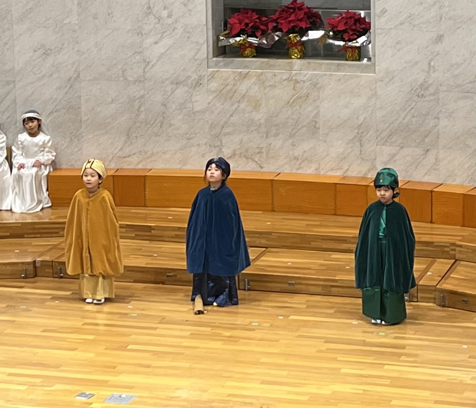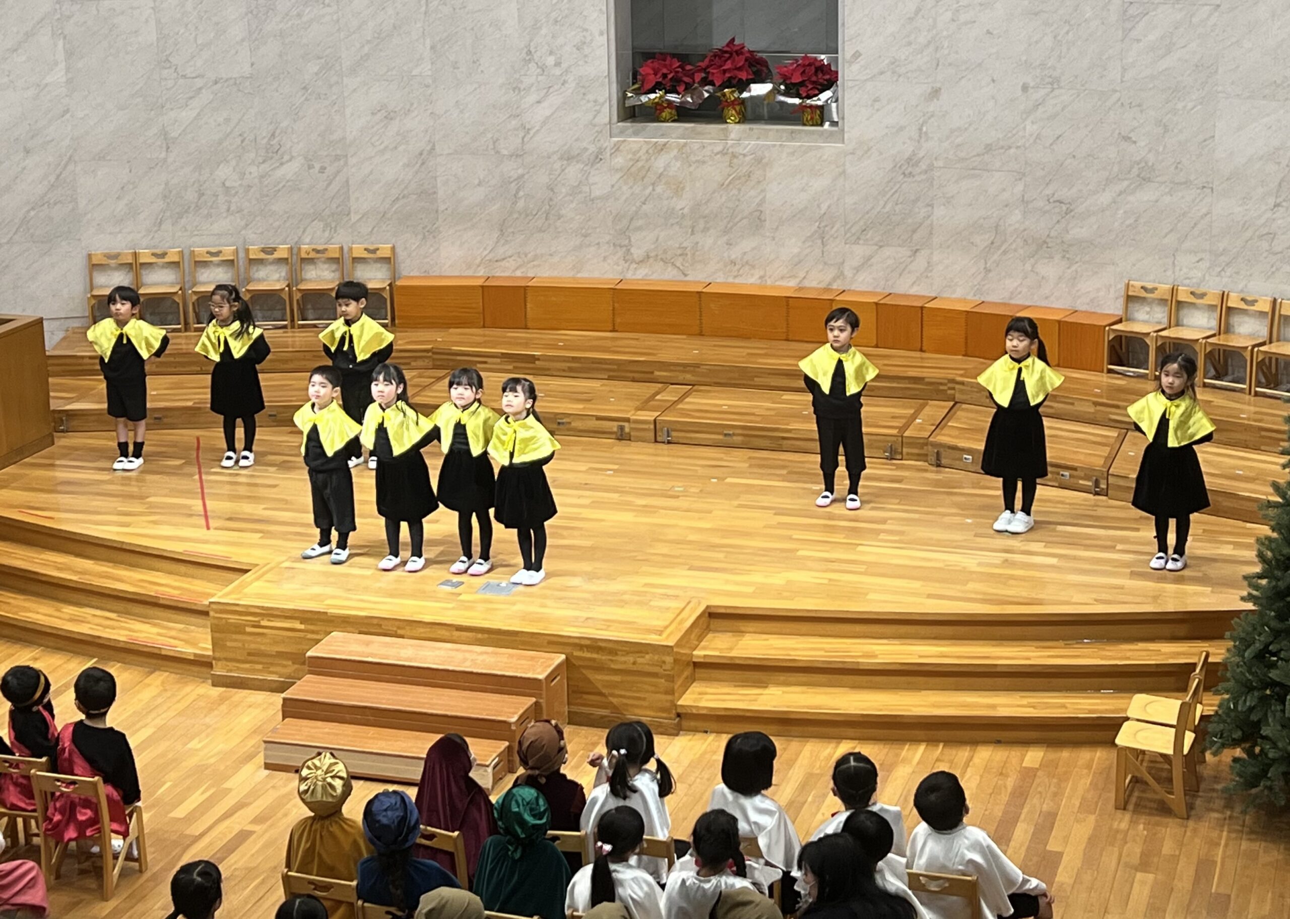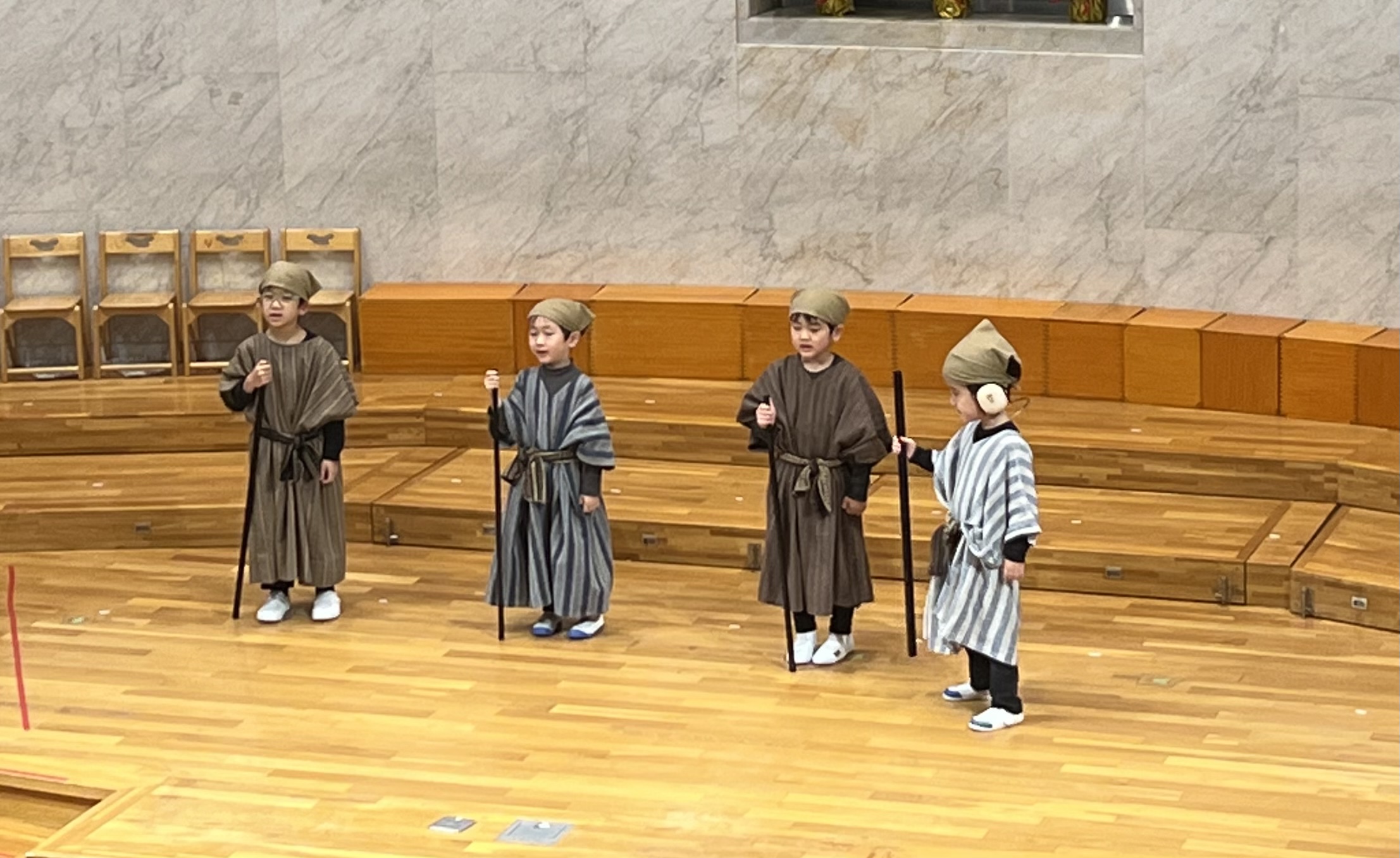 思った役とは違う役になったこともありました。小さな声だったお友だちが勇気を出せた時に、思わず拍手したり!お互いに褒め合ったり、励ましたり、そこにたくさんの成長が見られました。クリスマスの嬉しいお話を無事、伝えることができましたね。