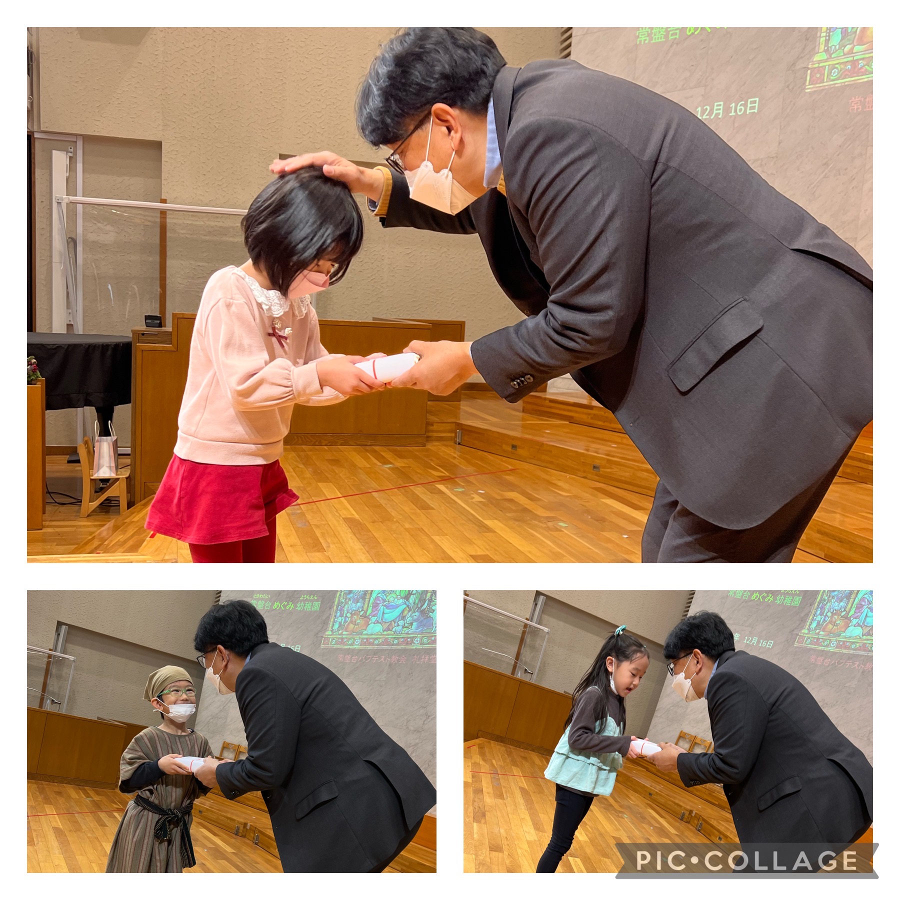今年度のクリスマス祝会(ページェント)は、それぞれの形で全員が参加し、おうちの方にその姿を観ていただくことが出来ました。幼稚園の想いをご理解・ご協力いただき、あたたかく支えてくださった保護者の皆さまに心から感謝いたします。ありがとうございました。