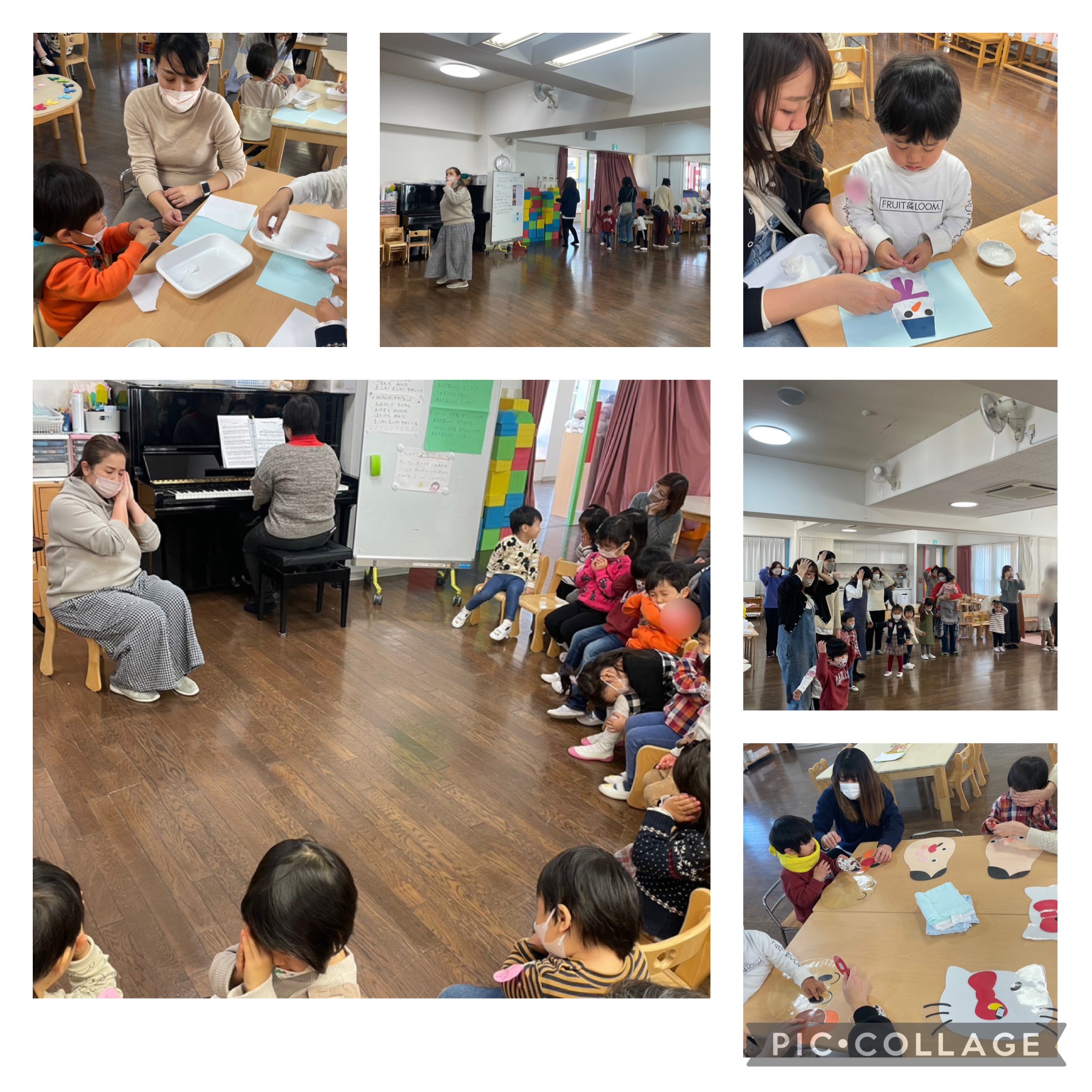 朝の自由遊びの中で、福笑いを楽しみました。