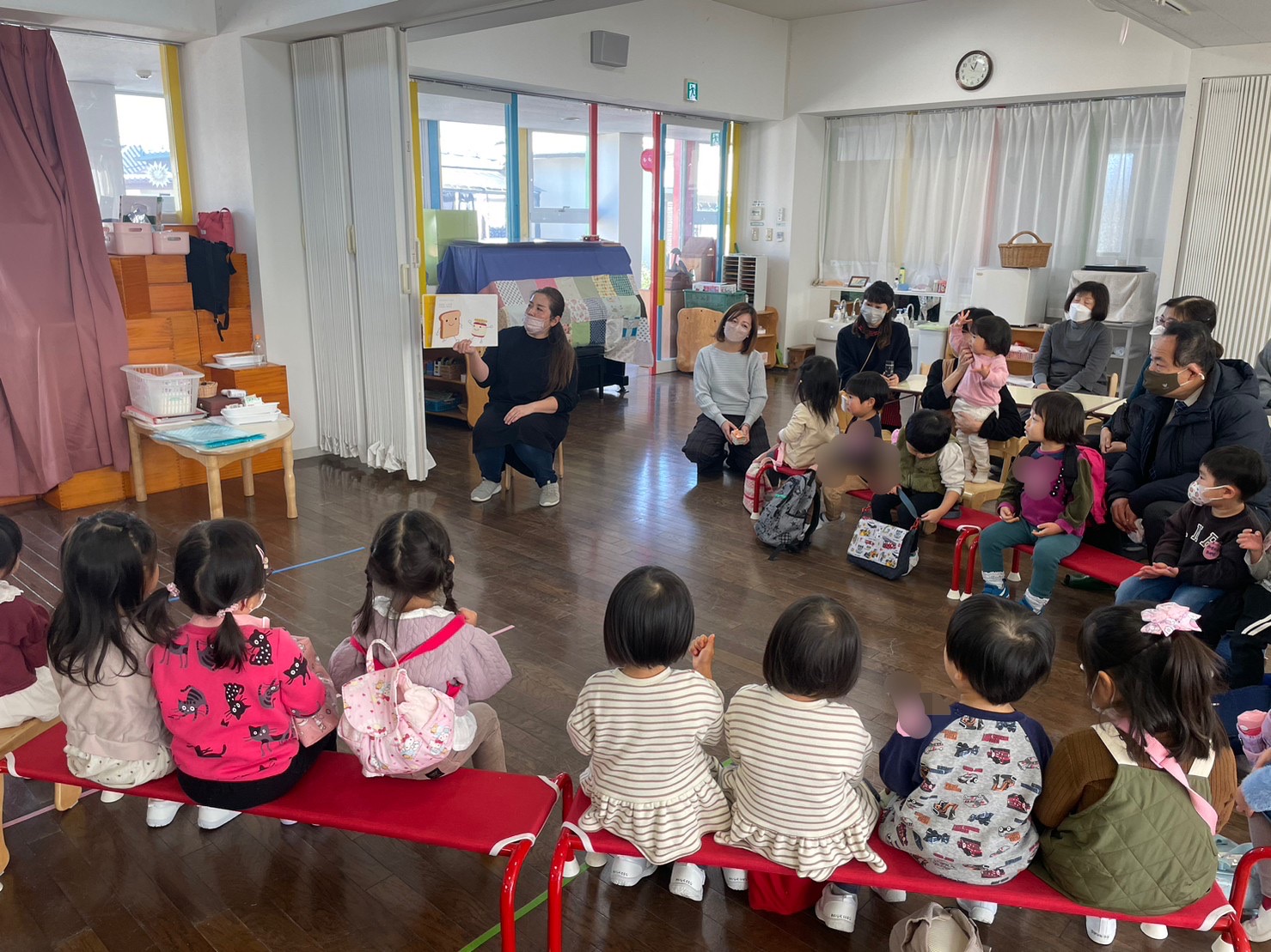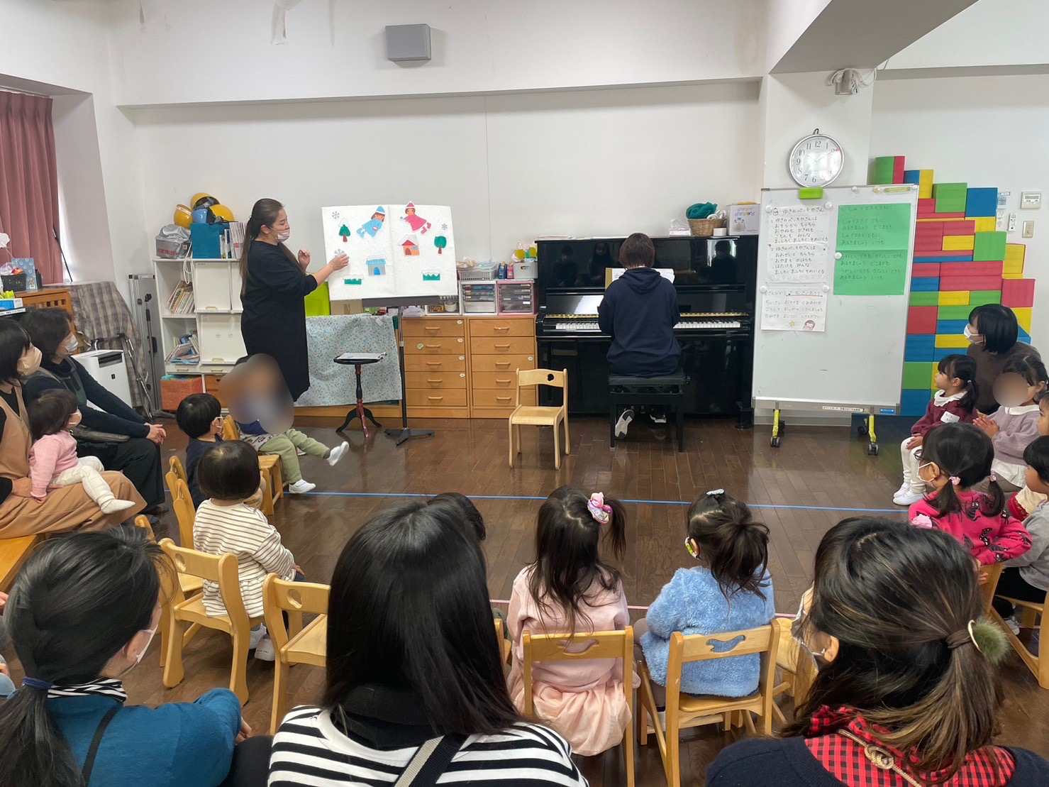 今週はおやつの時間は、おうちの方と離れて先生やおともだちと座っています。