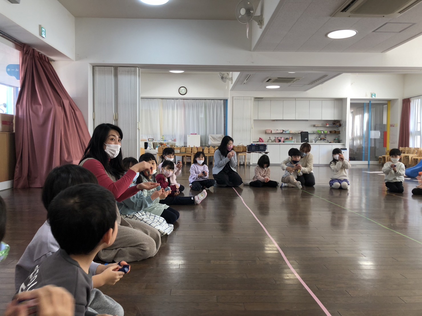 さくら組のお友だちのお母さんは、お手玉やわらべうたを歌い、さくら組の子どもたちと遊んでくれました。心温まる時間でしたね、ありがとうございました。