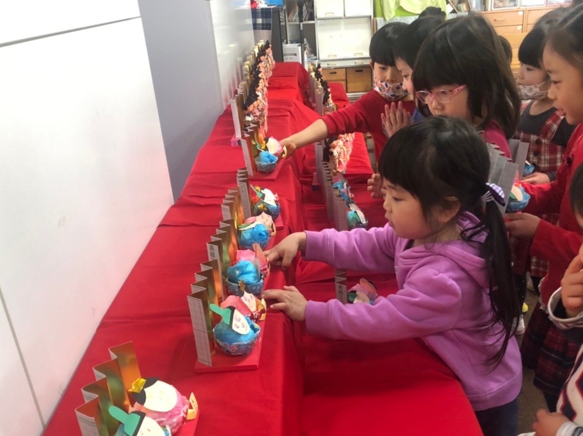 時間をかけて作ったひな人形を、自分たちで大切に運んで、そっと飾りました。