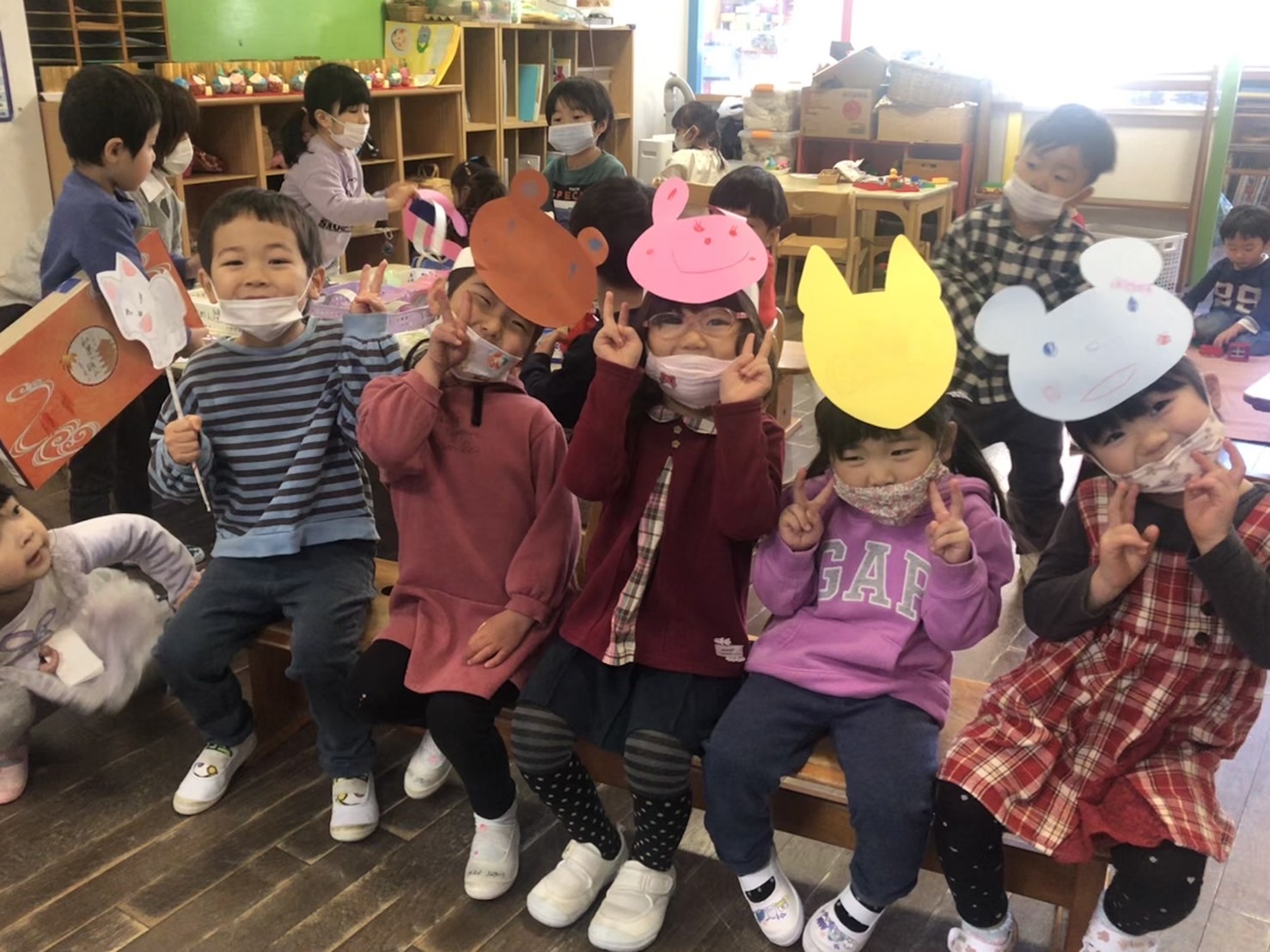 動物たちのお面を作り、手袋に好きな色を塗って、劇ごっこを楽しんでいます。