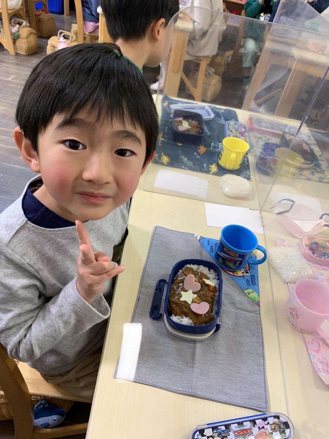 お昼は年長組のおうちの方々が作ってくださったスペシャルカレーとスペシャルデザート!みんな大喜びでした。とても美味しかったです。ありがとうございました。ごちそうさまでした。