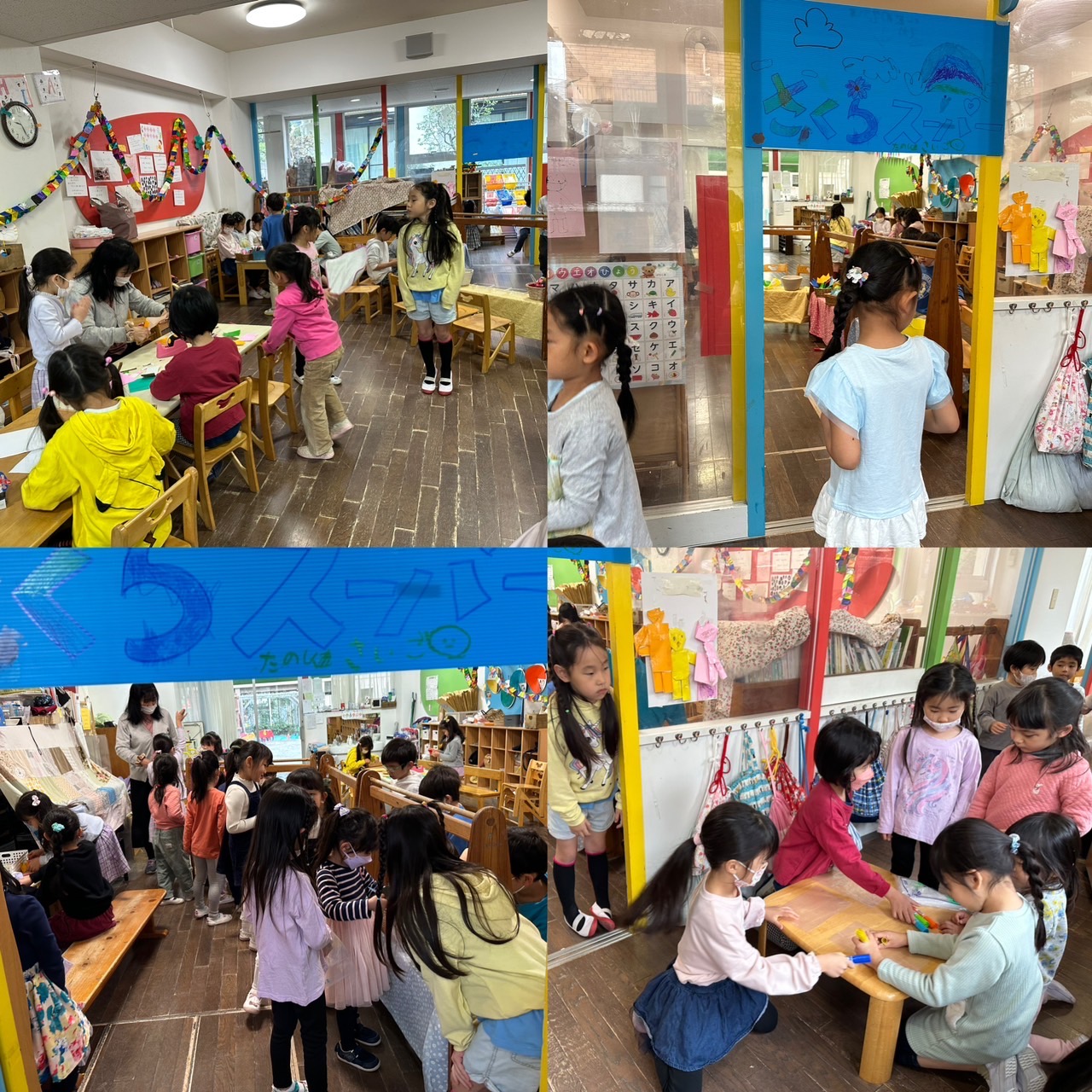 今日はお家や幼稚園で作った商品を並べ、さくらスーパーを開きました。9時30分の開店に合わせて看板を作ったり、スィーツを作り足したり、さくら組さんは楽しさを感じながら、準備しました。お客さんは、受付でお買い物袋に名前を書いてもらって、さくらスーパーへ!「ハートどうぞ!」「箸袋ください!」大盛況で、たくさんあった商品はほぼ売り切れました。