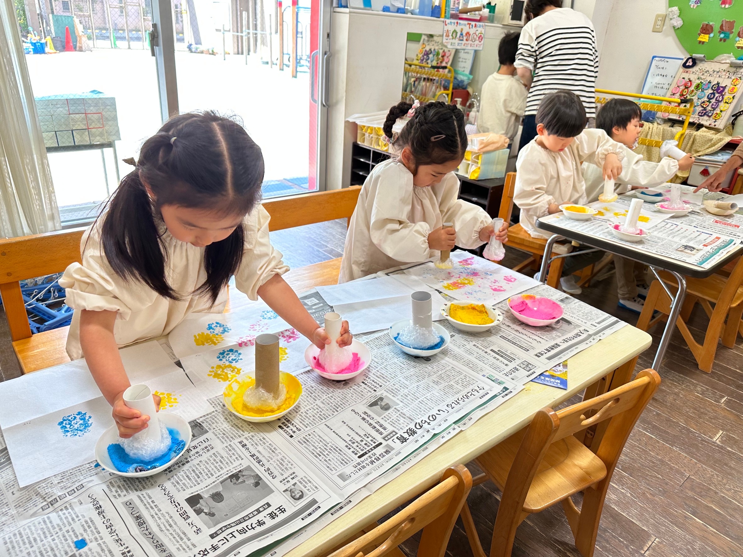 さくらさんからお借りしたこいのぼりの絵本は、替え歌がおもしろくて、たんぽぽ組のみんなは笑顔があふれていました。お魚の観察をするので、煮干しも食べました。「子どもの日」たくさんの経験がみんなの心に残っていきますように!
