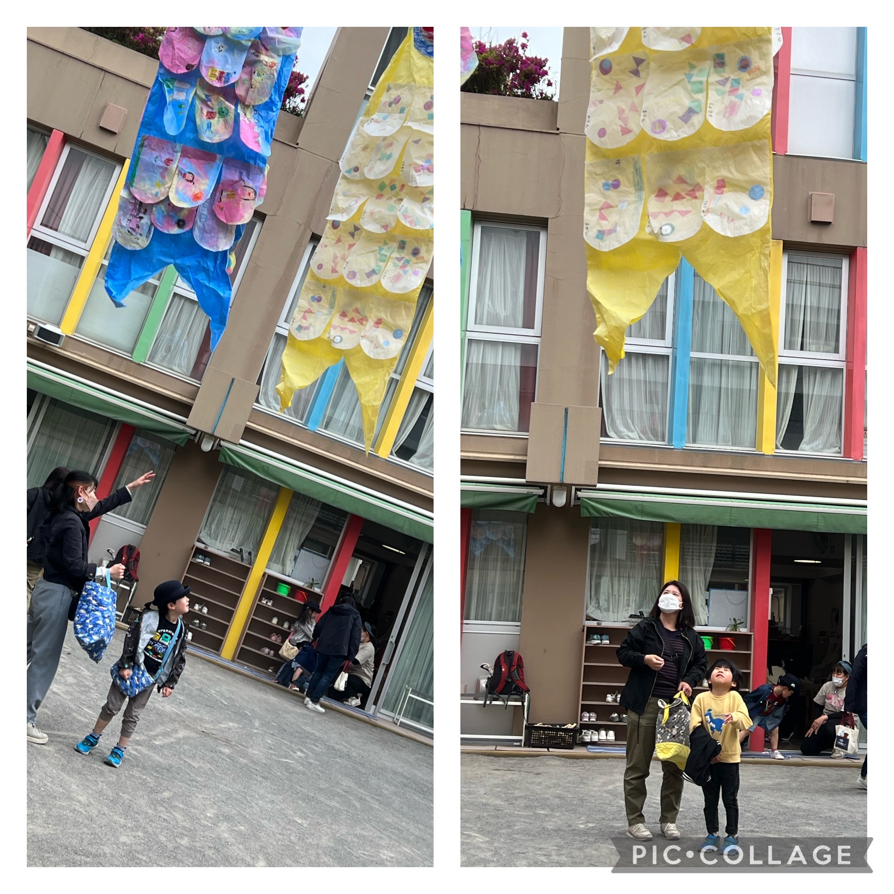 「せんせい、こいのぼりがおどってるよ!」と子どもたち。いっしょに身体を動かしていました。