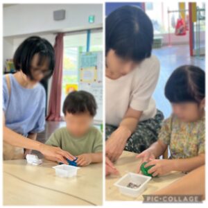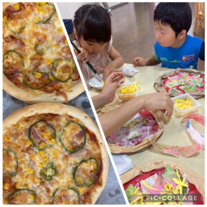 スライムを作ったり、工作でピザを作ったり、園庭で遊んだ後よーいどんのかけっこをしたり、楽器を使って音楽遊びをしたりしました♪