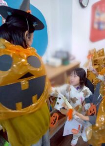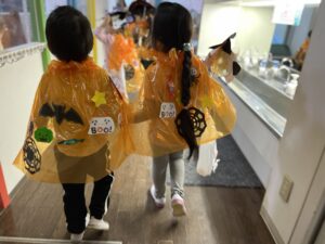 数日前から、マントを作ったり、おやつを入れる袋を作ったりとこの日を楽しみに製作していました。