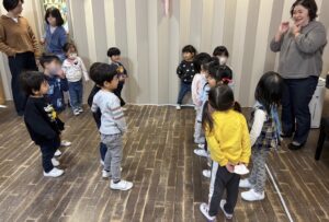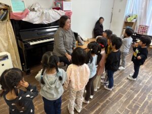 「三本指がお口に入るくらい大きく開けて歌う」ことなど、ポイントを教えていただき、子どもたちも楽しみながら取り組む様子が見られました。