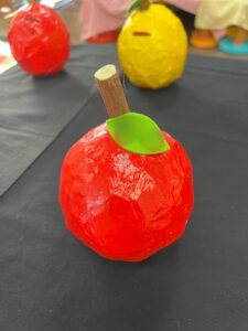 保護者の方にも皆の作品を見ていただきました。どれもステキな仕上がりですね。持ち帰りましたら、飾ってくださいね。