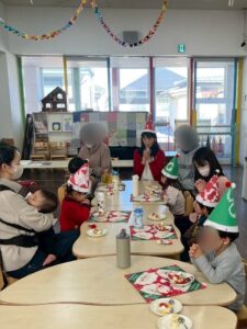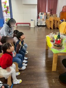 来年度から年少組に入園、進級が決まっているもも組さんのクリスマスのパーティーをしました。今日で2学期のもも組さんが終わります。アドベントクランツに火を灯して礼拝をしたり、ゲーム、おやつのデコレーションをしました。自分で飾ったケーキは美味しかったですね⭐︎12月生まれのお友達のお誕生日もお祝いしました!みなさん、楽しいステキなクリスマスをお迎えください。