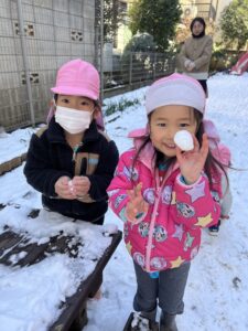 2月になり春も近づいているはずですが、厳しい寒さの中で雪も降り、体調を崩している子も多く、みんなでお休みのお友達のためにお祈りをしました。