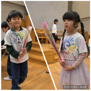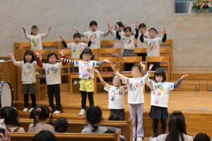 お別れ感謝会② イベント 今日のひとこま 2026.02.20 今日は年長組のお家の方をお迎えしてのお別れ感謝会でした。1年間のスライドショーのあとは、子ども達の歌や合奏です。幼稚園生活を支えてくださったお父さん、お母さんにサプライズでお花のプレゼントをしました。神さまからいただいたそれぞれの賜物を大切に、もうすぐめぐみ幼稚園を巣立っていきます。