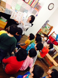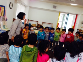 初めての英語 お知らせ イベント 今日のひとこま 2014.04.17 今日から年長・さくら組は、英語のレッスンが始まりました。 『ハロー』のご挨拶から始まり、A.B.Cの歌や讃美歌も英語で歌ってみました。普段、聞いている単語(果物・デザートなど…)の発音が英語では違っていたり…先生のお話しを一つひとつ楽しく聞いていましたね。 また、来週も楽しみましょうね。
