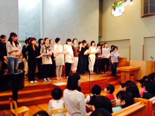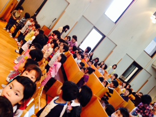 こどもたちは、お母さんの姿を教会堂で見つけると『おかあさ~ん』と手を振っていました。 一緒に礼拝出来るのは嬉しいようですね。
