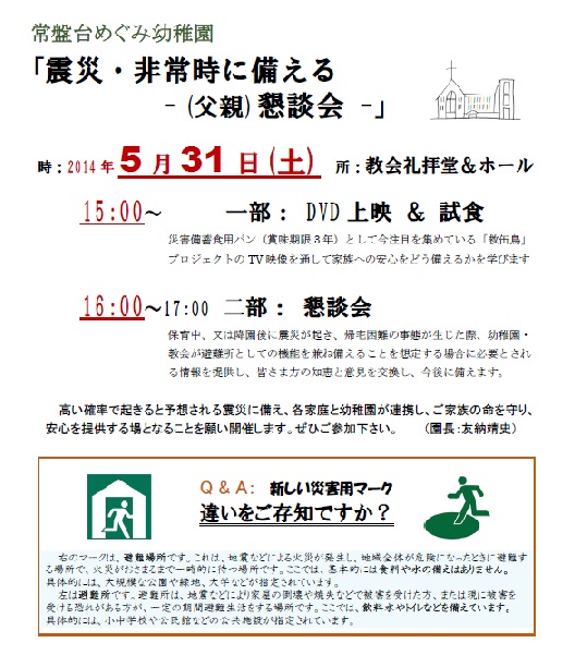 震災・非常時に備える – (父親)懇談会 – 来週土曜日開催