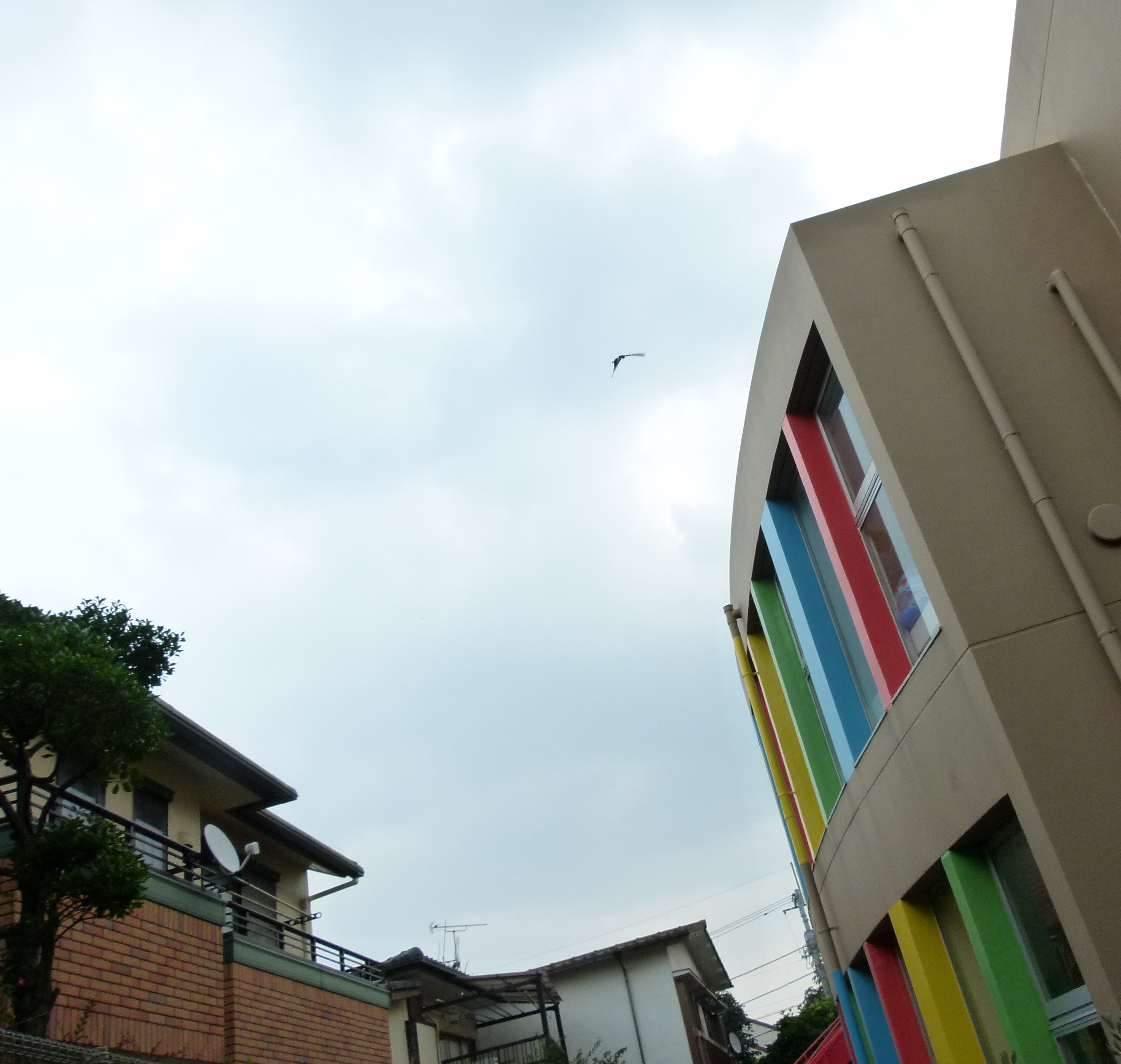 元気でね お知らせ イベント 今日のひとこま 2014.07.24 さなぎになった青虫くん。 夏休みになった静かな幼稚園で、 さなぎはきれいなアゲハ蝶になりました。 早く空を飛びたくて、 パタパタ、パタパタ、かごの中で羽を動かしていました。 そおーっとかごの蓋を開けると、 アゲハ蝶は、あっという間に高く高く、 力強く飛んでいきました。 元気でね。 幼稚園のお友だちに、会いに来てね。 空高く飛んでいくアゲハ蝶です見えますか?