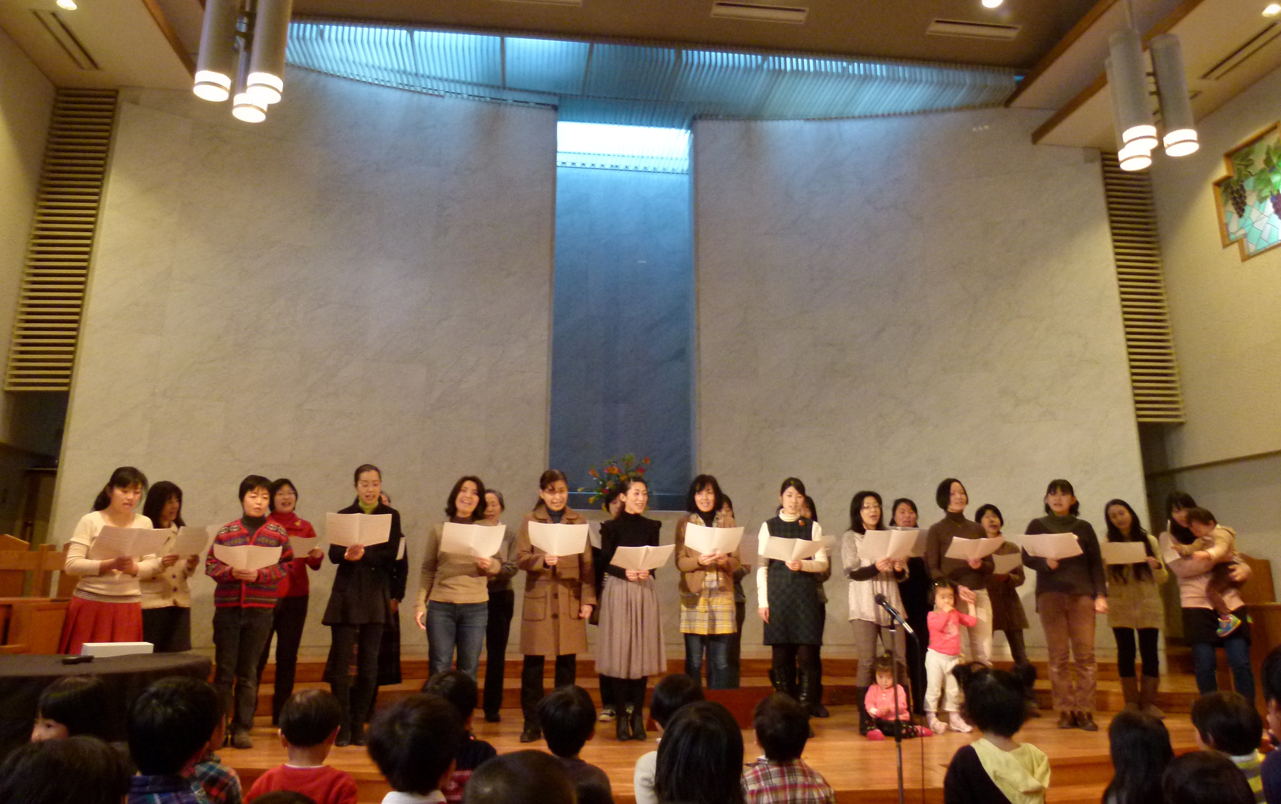 おかあさんたちといっしょにクリスマスの賛美歌を歌いました。