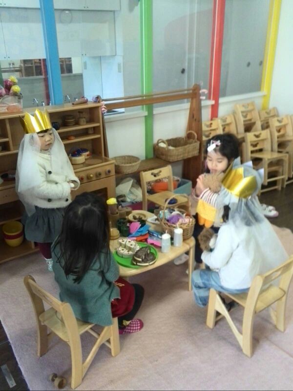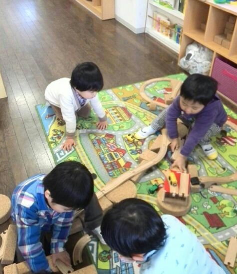おうちごっこ、電車ごっこ、お友だちと沢山お話しをしながら遊んでいます。