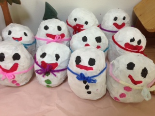 1月に雪が降った時に障子紙を貼って作った、雪だるまのゆきんこさん。
