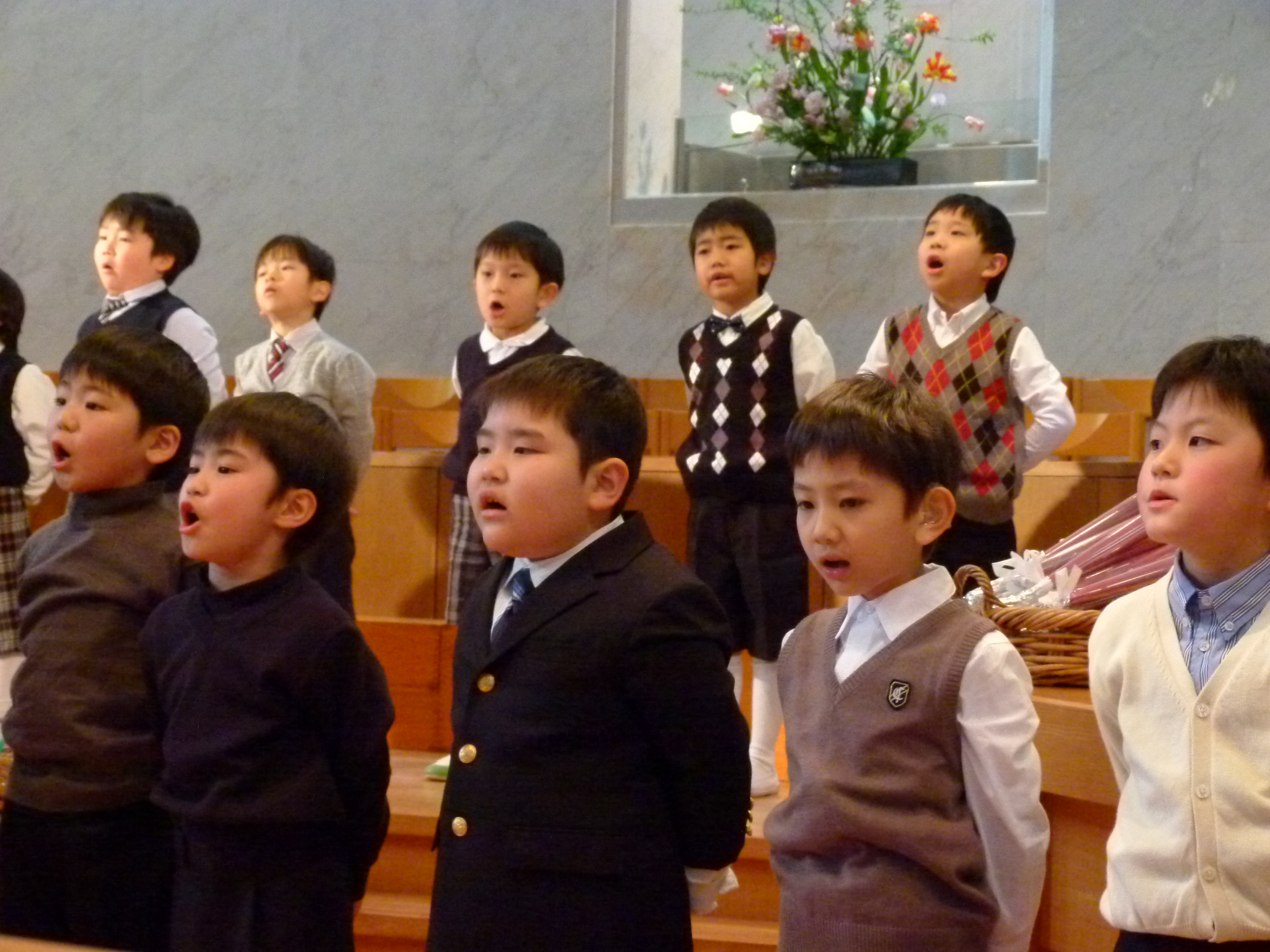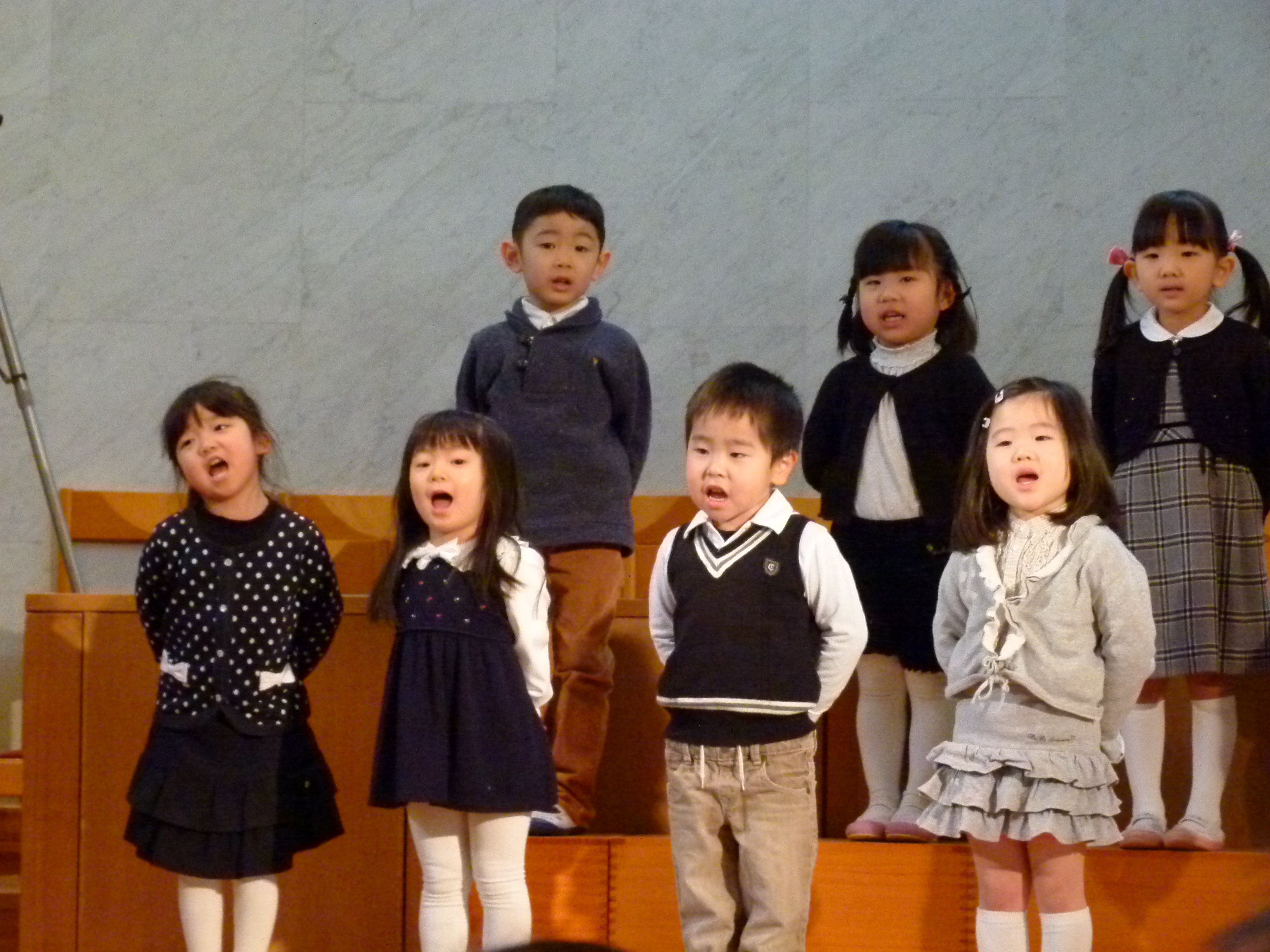 トップバッターの年中さんは、どんなに緊張した事でしょう。先週からお休みのお友達が多く、『皆、出られるかな?』と心配していっぱいお祈りしていましたね。