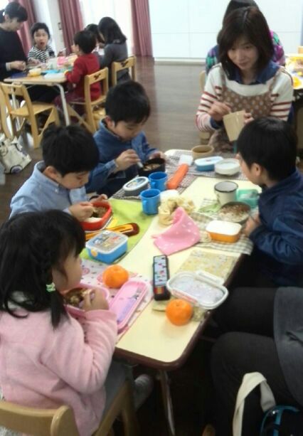 お待ちかねのお昼になり、お友達、お母さん方と楽しい会食の時間です。